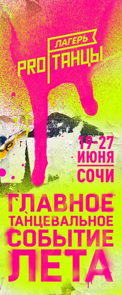 С 19 по 27 июня 2016 года в Олимпийском парке Сочи пройдет самое масштабное событие этого лета – танцевальный «Лагерь PROТАНЦЫ». Это еще один проект от компании Comedy Club Production и создателей грандиозного шоу «ТАНЦЫ» на ТНТ. На одной площадке на берегу Черного моря соберутся профессиональные хореографы и танцовщики со всего мира, чтобы научить всех желающих искусству танца. «Лагерь PROТАНЦЫ» – это целая неделя мастер-классов, соревнований и зажигательных вечеринок у моря, драйва и живых эмоций.