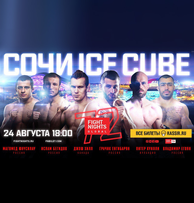 13 августа, промоутерская компания FIGHT NIGHTS GLOBAL в партнерстве с ведущим китайским промоушином Kunlun Fight представляет международный турнир по смешанным единоборствам (ММА) FIGHT NIGHTS GLOBAL 72. Курортная столица России станет свидетелем десяти увлекательных поединков, в которых примут участие ведущие бойцы России, Армении, Китая, Канады, США и Казахстана.