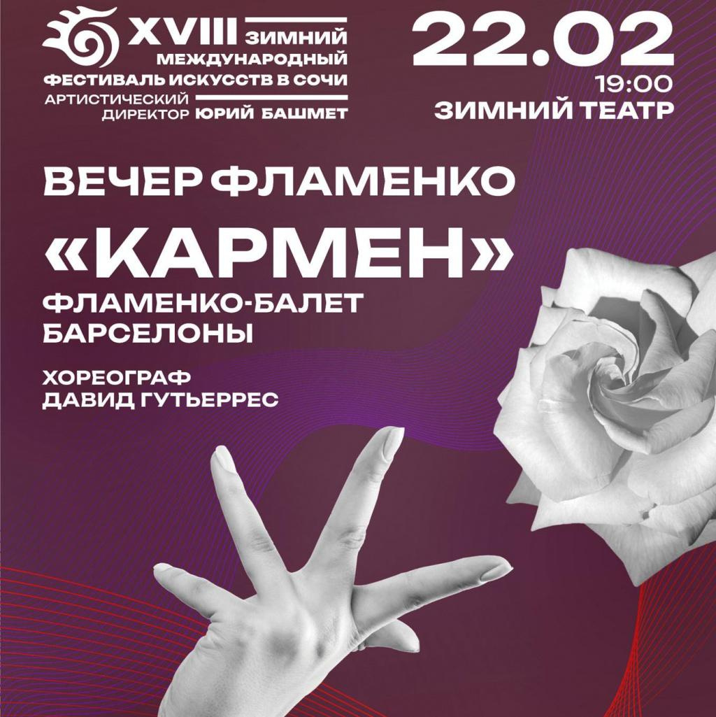 Шоу. Праздники. Фестивали: XVIII ЗИМНИЙ МЕЖДУНАРОДНЫЙ ФЕСТИВАЛЬ ИСКУССТВ В СОЧИ ЮРИЯ БАШМЕТА. СПЕКТАКЛЬ "КАРМЕН". БАЛЕТ "ФЛАМЕНКО" (ИСПАНИЯ)