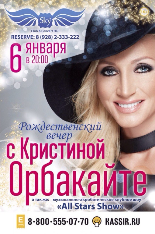 06 ЯНВАРЯ SKY CLUB & CONCERT HALL представляет Рождественский Вечер вместе с КРИСТИНОЙ ОРБАКАЙТЕ!
