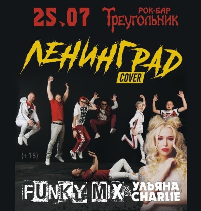 Funky Mix с новой программой песен группы «Ленинград» в Рок-баре Треугольник, 25 июля! В этот вечер кавер группа Funky Mix, при участии Ульяны Charlie сделают вечер проведённый в Рок-баре Треугольник – ярким, стильным, зрелищным событием в вашей жизни! Выведут из депрессии и помогут преодолеть боязнь танцполов. Проведут активную профилактику варикоза и целлюлита, а также застенчивости.
