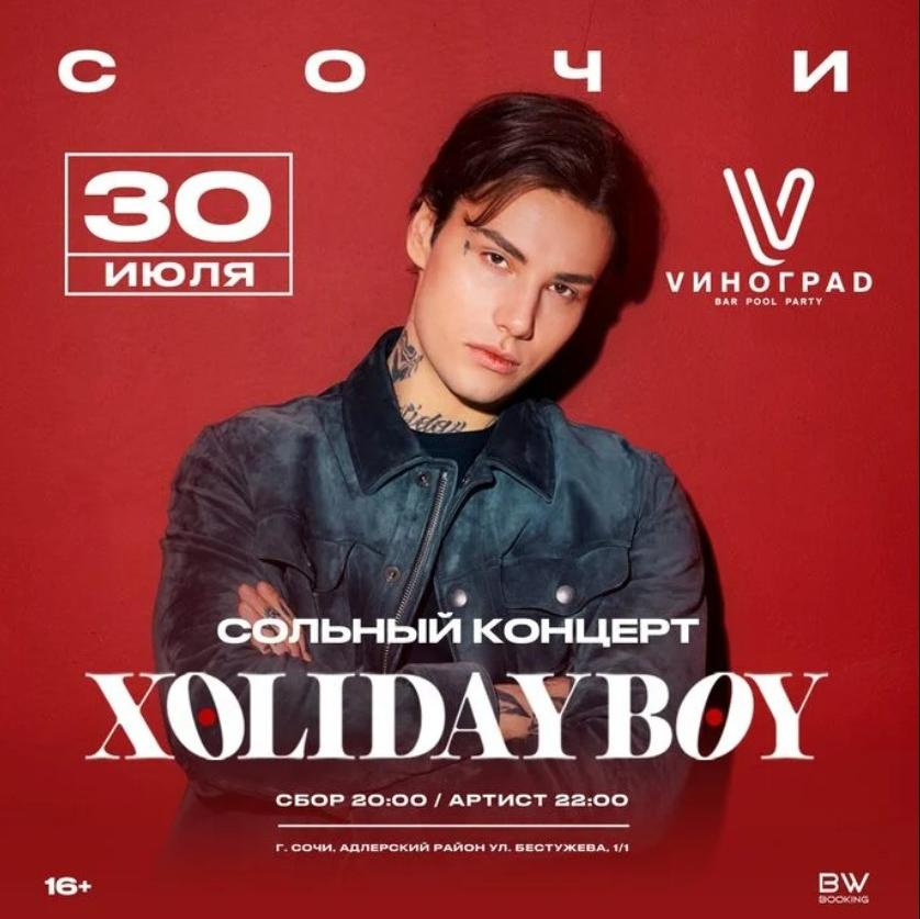 Встречайте сольный концерт «Xolidayboy» 30 июля в VИНОГРАDе.