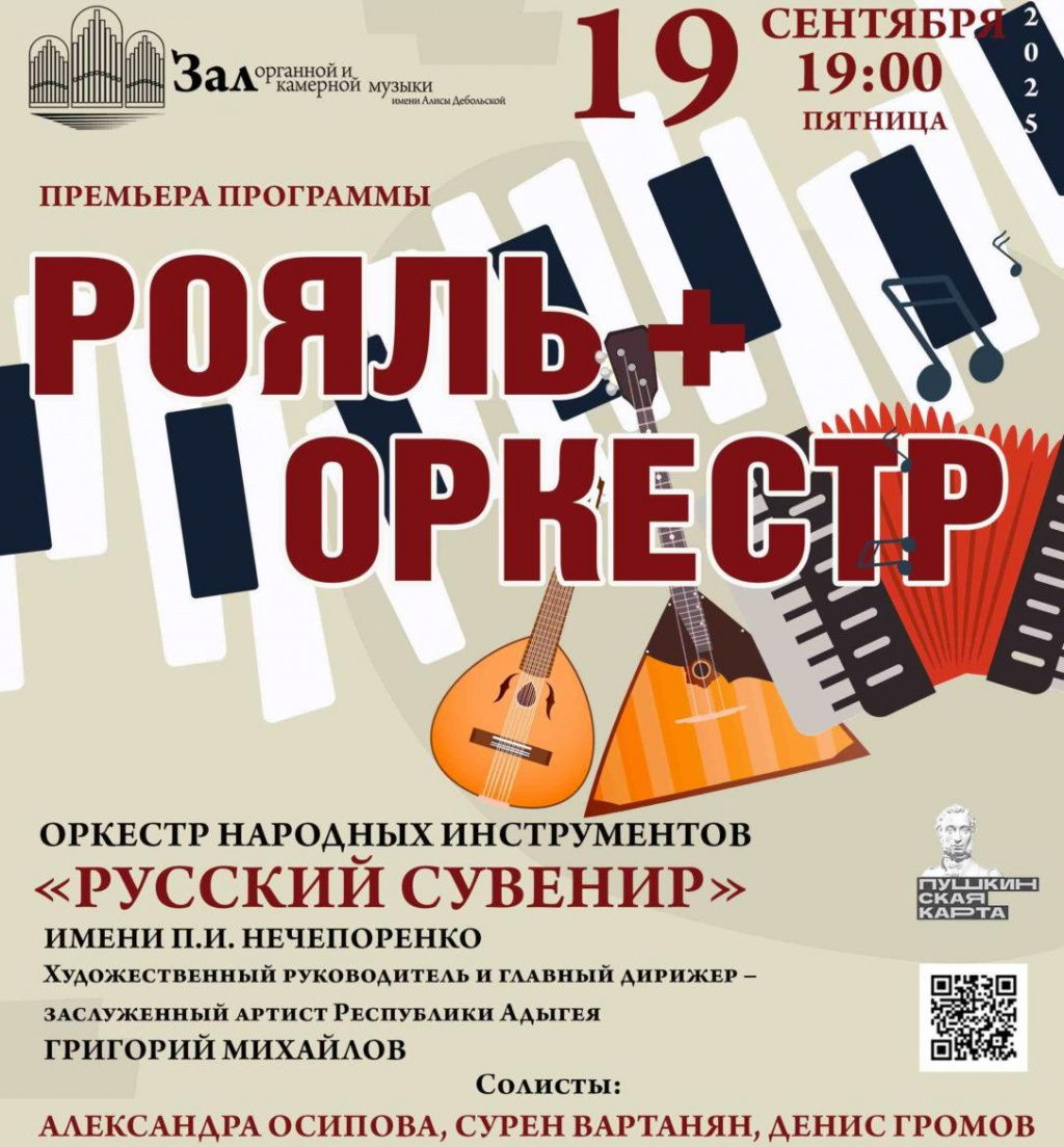 Предстоящая премьера – это настоящий творческий союз классики и фольклора. На сцене органного зала прозвучат произведения в исполнении солирующего рояля и оркестра народных инструментов. Такое интересное сочетание академического фортепианного звука и фольклорных тембров оркестровых инструментов привлекает внимание слушателей и исполнителей.
