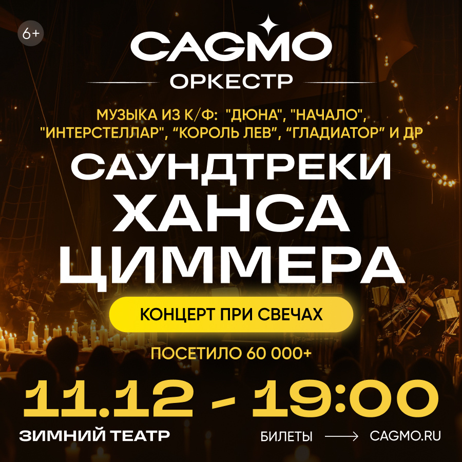 В исполнении струнного оркестра CAGMO прозвучат лучшие саундтреки композитора. Оригинальное звучание композиций, подчеркивающее авторский стиль Ханса Циммера, передаст атмосферу любимых фильмов. Новое прочтение легендарной музыки позволит заново прочувствовать впечатления и эмоции от просмотра эпических кинокартин.