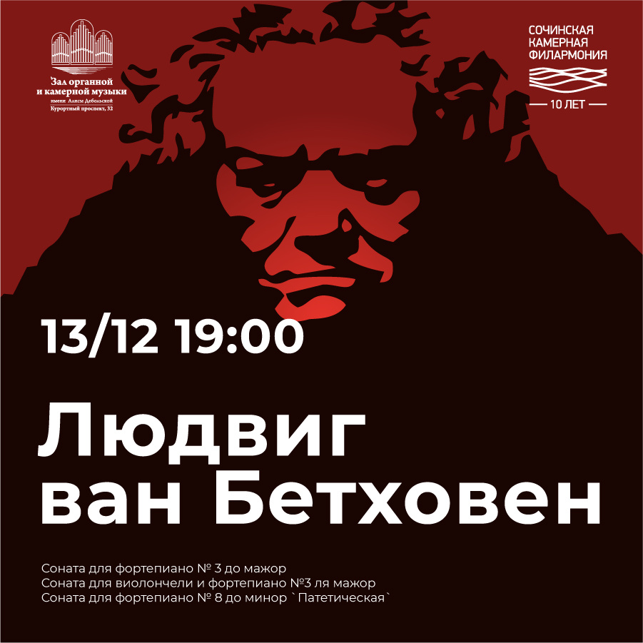 Солисты Сочинской камерной филармонии приглашают вас на уникальный концерт 13 декабря в 19-00 в зал Органной и камерной музыки. Чистая страсть, бунт и бессмертная мощь музыки великого гения!