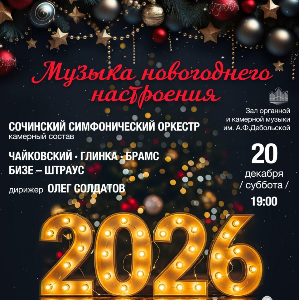 Под управлением талантливого дирижера, лауреата премии Правительства России и Заслуженного деятеля искусств Карелии Олега Солдатова, камерный состав Сочинского симфонического оркестра подарит незабываемые эмоции и прекрасное звучание, которое наполнит зал музыкой и духом новогодних праздников.