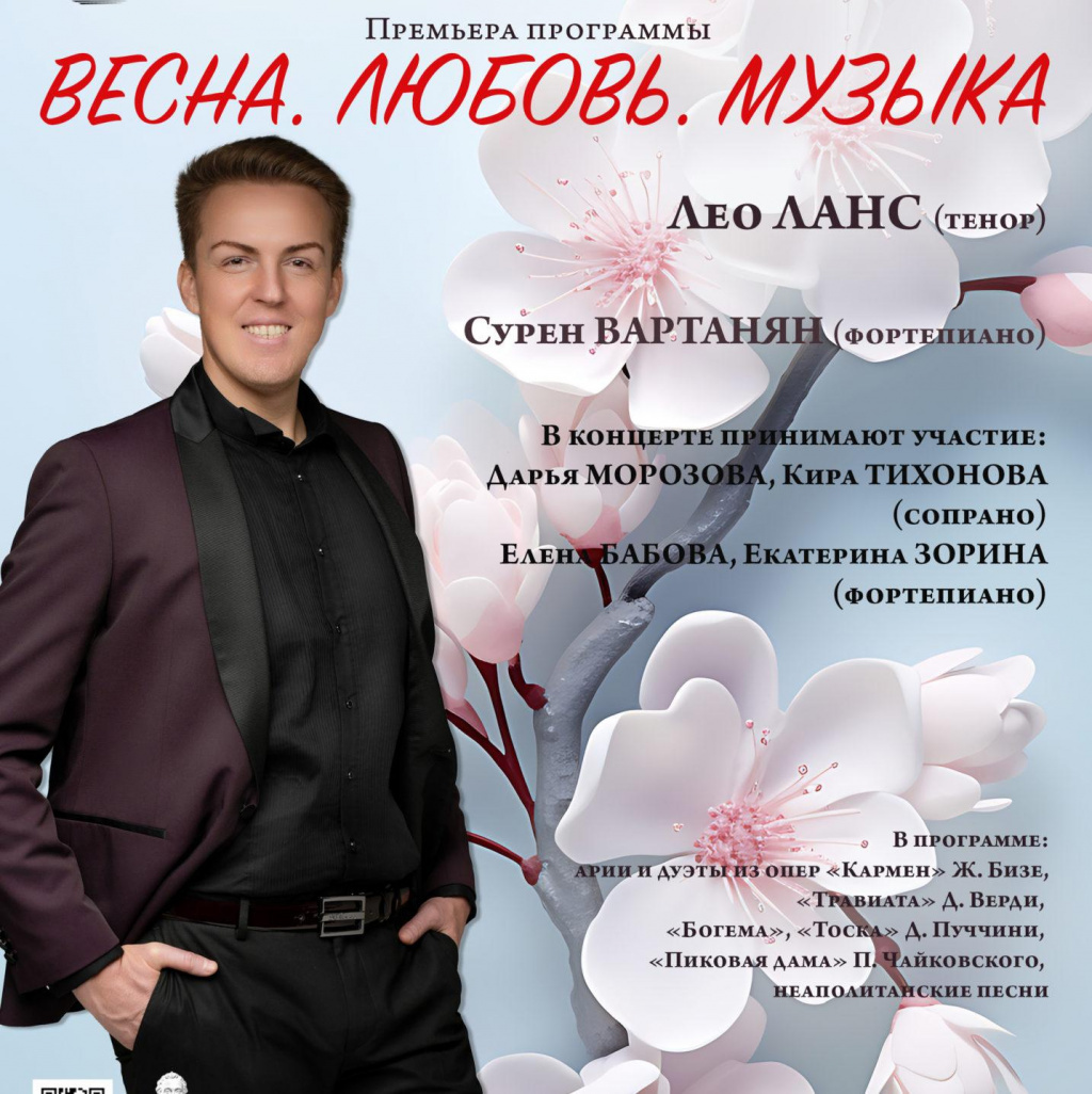В программе вечера тенор Лео Ланс и солистки Сочинской филармонии исполнят дуэты из знаменитых опер – «Кармен» Ж. Бизе, «Травиата» Д. Верди, «Богема», «Тоска» Д. Пуччини», «Пиковая дама» П. Чайковского.