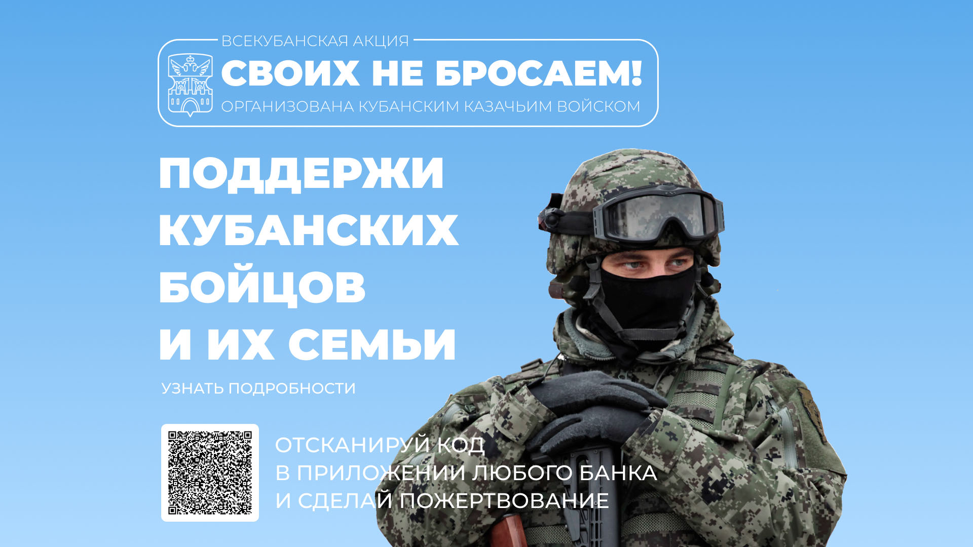Фото и видеоотчеты будут выкладывать в специальном телеграм-канале «Своих не бросаем» и на сайте Кубанского казачьего войска.