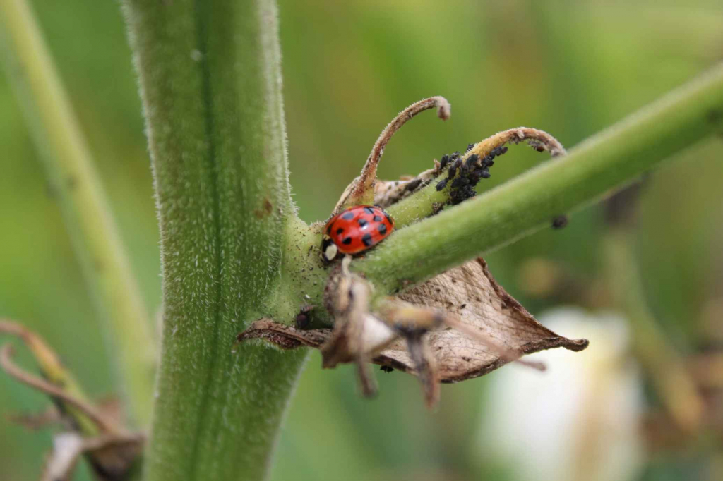 Не рекомендуется проводить обработку химикатами в период цветения, так как это может навредить опылителям — пчелам и шмелям. Если насекомых стало очень много, лучше дождаться окончания цветения и провести обработку инсектицидами на основе имидаклоприда, малатиона, аверсектина.