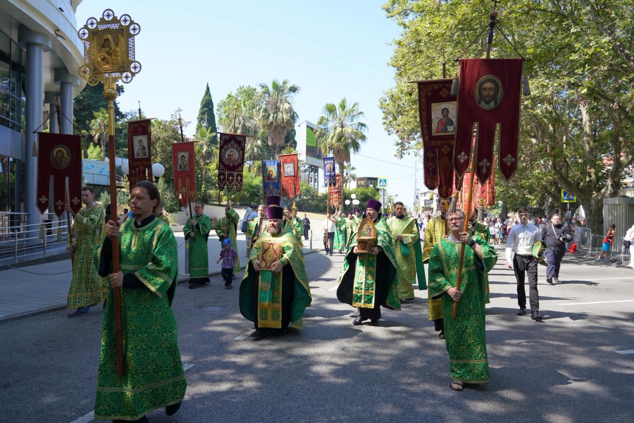 Восьмого июля в центре Сочи прошел традиционный крестный ход, приуроченный ко дню памяти святых благоверных князей Петра и Февронии, покровителей семьи и брака. Верующие прошли от Собора Архангела Михаила до памятника Петру и Февронии на площади перед ЗАГС Центрального района. Рядом с монументом состоялось выступление церковного хора.