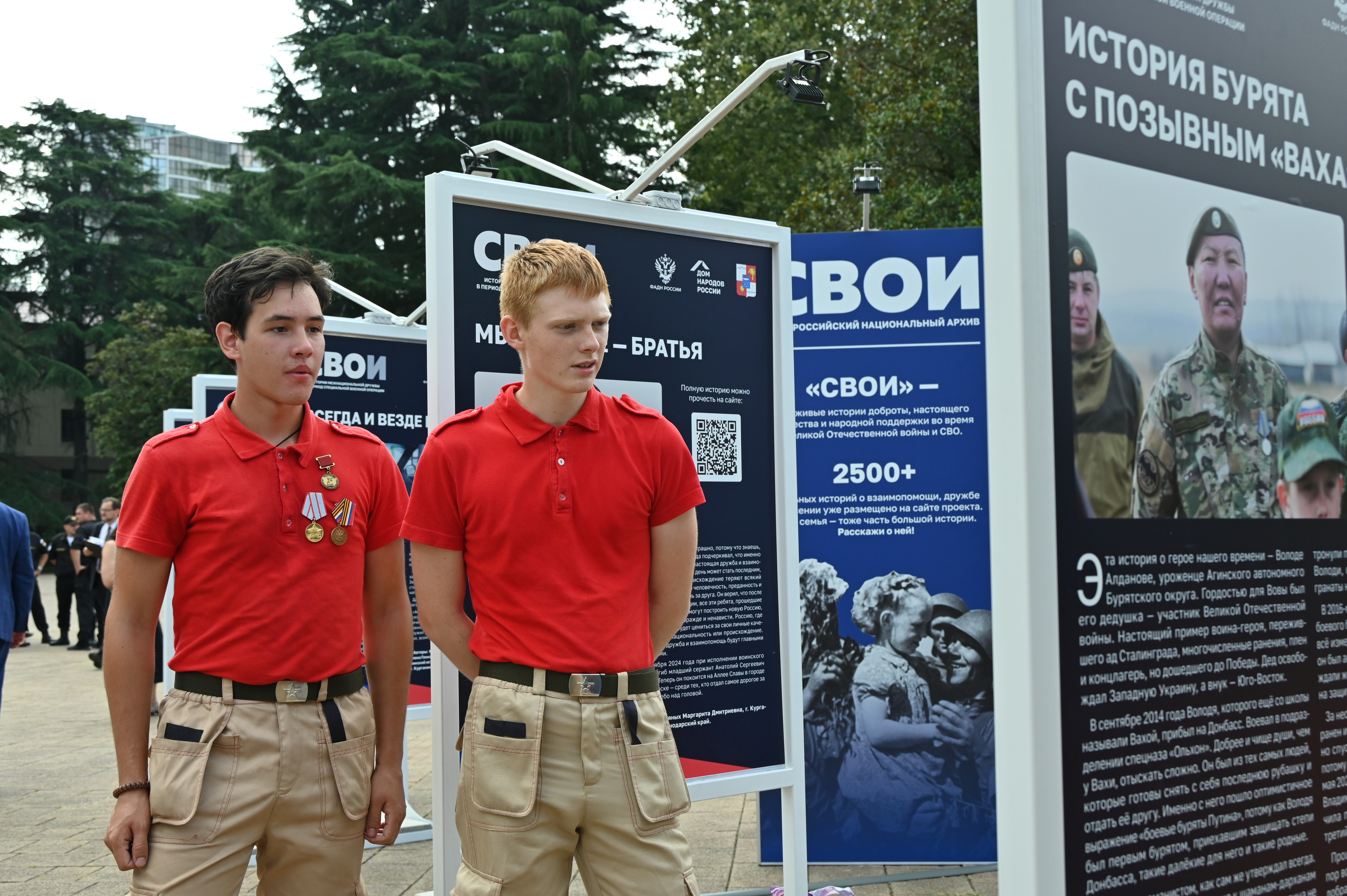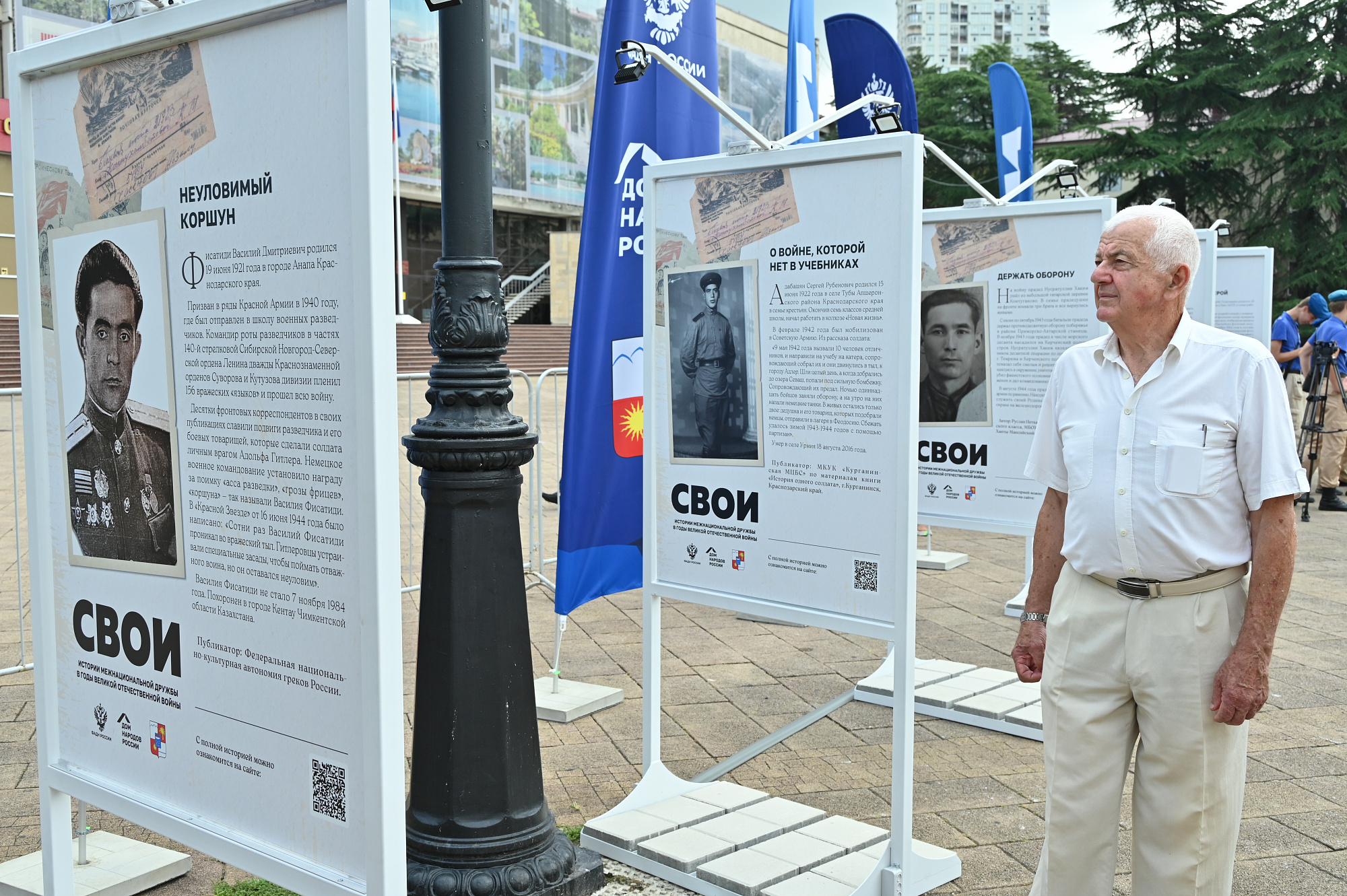 – Сочи – многонациональный город, где веками бок о бок живут представители разных культур и традиций. Выставка «СВОИ» рассказывает о том, как в тяжелые для страны времена люди разных национальностей плечом к плечу защищали Родину, демонстрируя беспримерное мужество и взаимовыручку. Экспозиция включает архивные фотографии и истории участников Великой Отечественной войны, рассказанные их потомками, а также материалы, посвященные героям специальной военной операции. Особое внимание уделено историям жителей Сочи, которые в разные эпохи доказали, что сила России – в единстве ее народов. Такие выставки имеют огромное значение для воспитания молодежи, формирования патриотизма и сохранения исторической памяти. Наш долг – помнить о подвигах тех, кто отстоял свободу и независимость страны в прошлом, и тех, кто сегодня продолжает эту борьбу. Никто не забыт и ничто не забыто, – отметил первый заместитель главы города Сочи Сергей Коновалов.