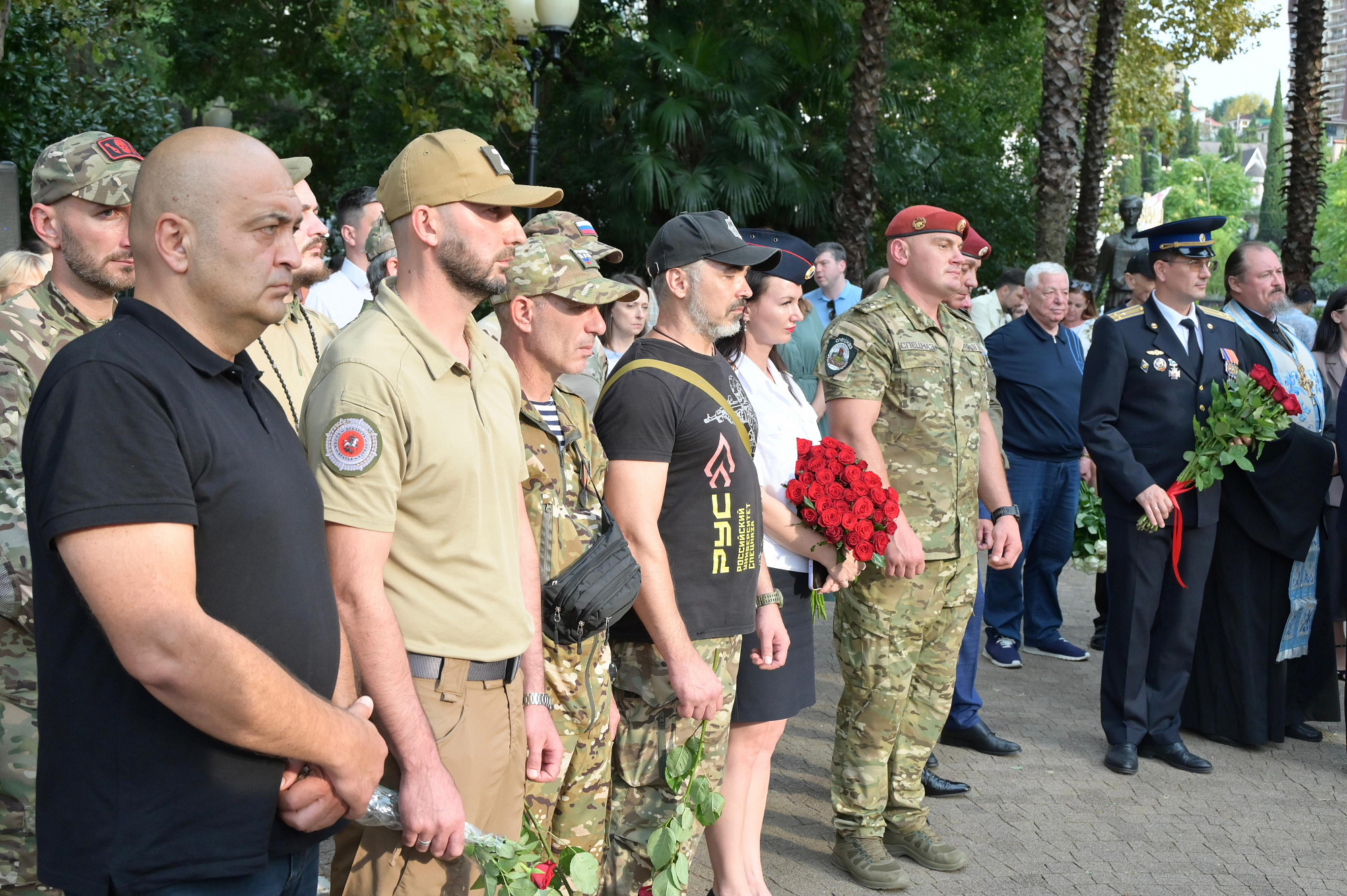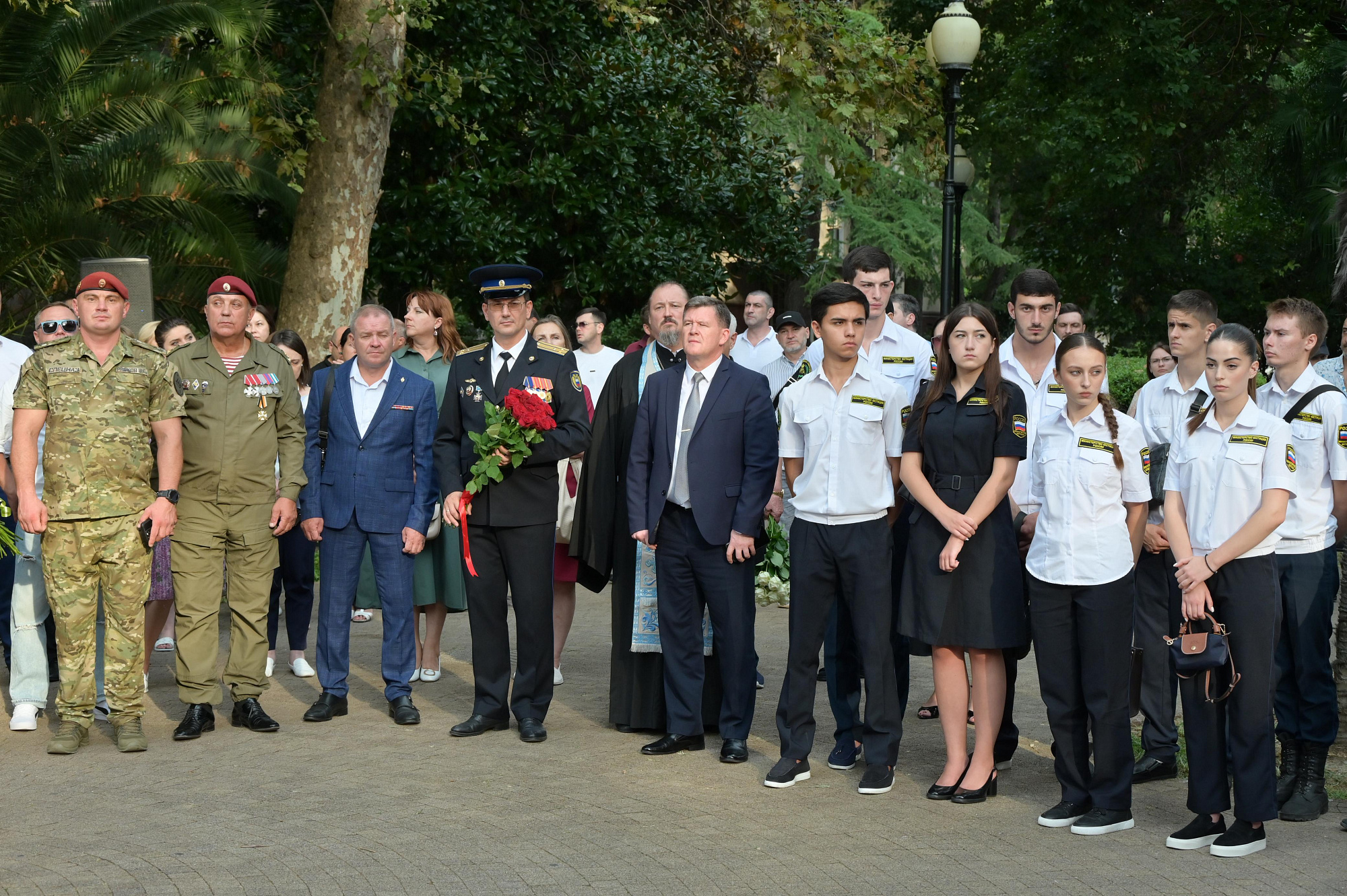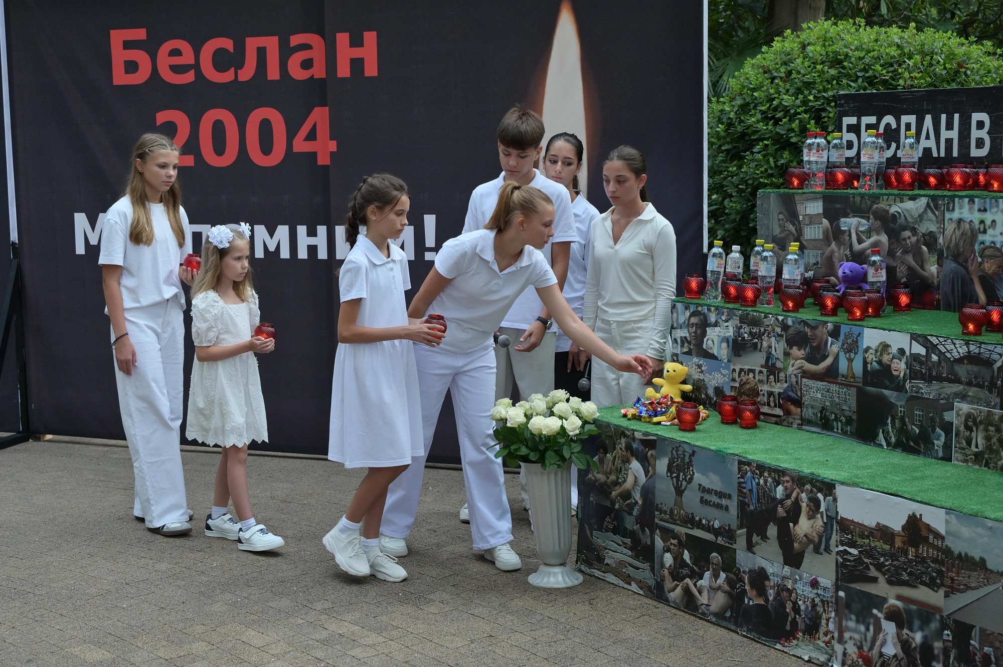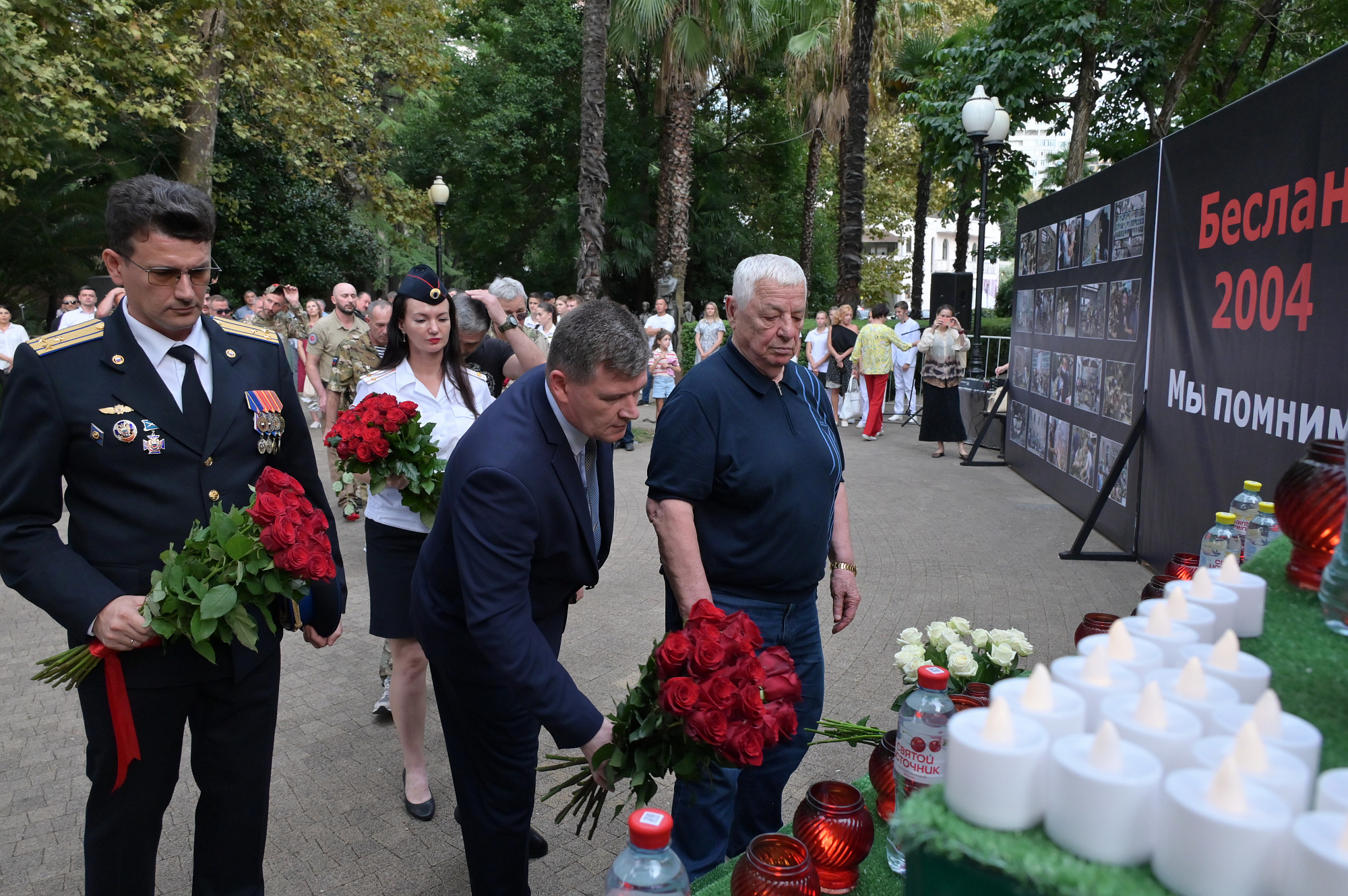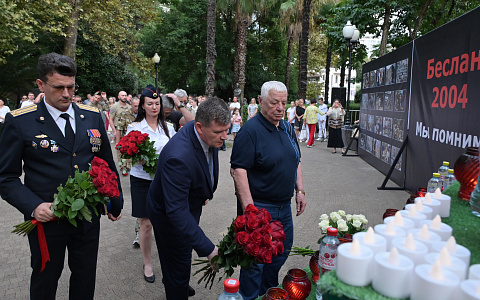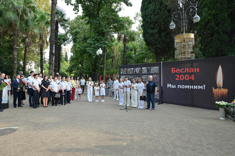 Мероприятие состоялось в сквере на улице Навагинской у памятника «Первой учительнице». В акции памяти приняли участие представители администрации города, депутаты Городского Собрания Сочи, сотрудники правоохранительных служб и ведомств, ветераны вооруженных конфликтов и СВО, национальные общины курорта, представители Сочинской епархии, воспитанники военно-патриотических клубов и формирований. Почетными гостями стали ветеран боевых действий спецназа ФСИН, принимавший участие в контртеррористических операциях по освобождению заложников, Валерий Кокорев и участник специальной военной операции, заместитель командира Ассоциации ветеранов боевых действий "Братья", командир взвода диверсионно-разведывательного отряда «Алания» Александр Малдзигов.