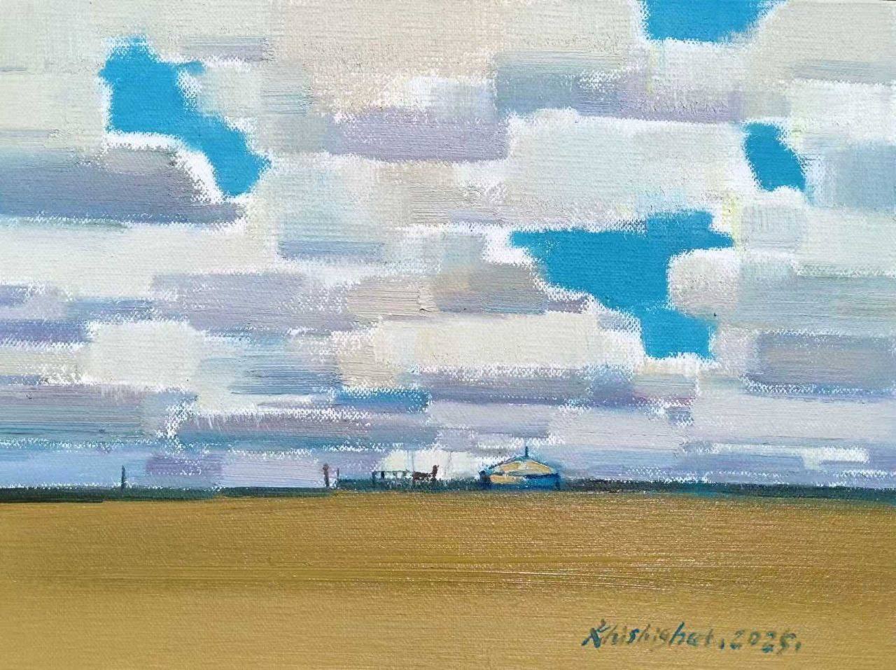 Международный резонанс проекту придают таланты из соседних стран. Хишигбат Оидов из Китая – уроженец Внутренней Монголии, через философские пейзажи и образы родной степи рассказывает о связи человека с землёй предков и вечной ностальгии по «малой родине». Монгольский мастер Эрдэнэ-Очир Хассанов – признанный культурный деятель и участник Пекинской биеннале, сочетает традиции степной культуры с современным художественным языком, утверждая искусство как форму межнационального диалога.