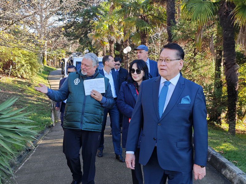 Заведующий выставочной экспозицией Вилла «Надежда» Дмитрий Кривошапка провел делегации экскурсию по парку и показал архивные фотографии с почетными гостями из Монголии. Особый интерес дипломатов вызвал черно-белый снимок, сделаный в 1970 году и запечатлевший визит Юмжагийна Цеденбала, государственного и партийного деятеля Монгольской Народной Республики, Маршала МНР. Обозревая парк делегация также посетила пальму трахикарпус, посаженную мэром Улан-Батора Сурэнжавын Балбаром в 1973 году.
