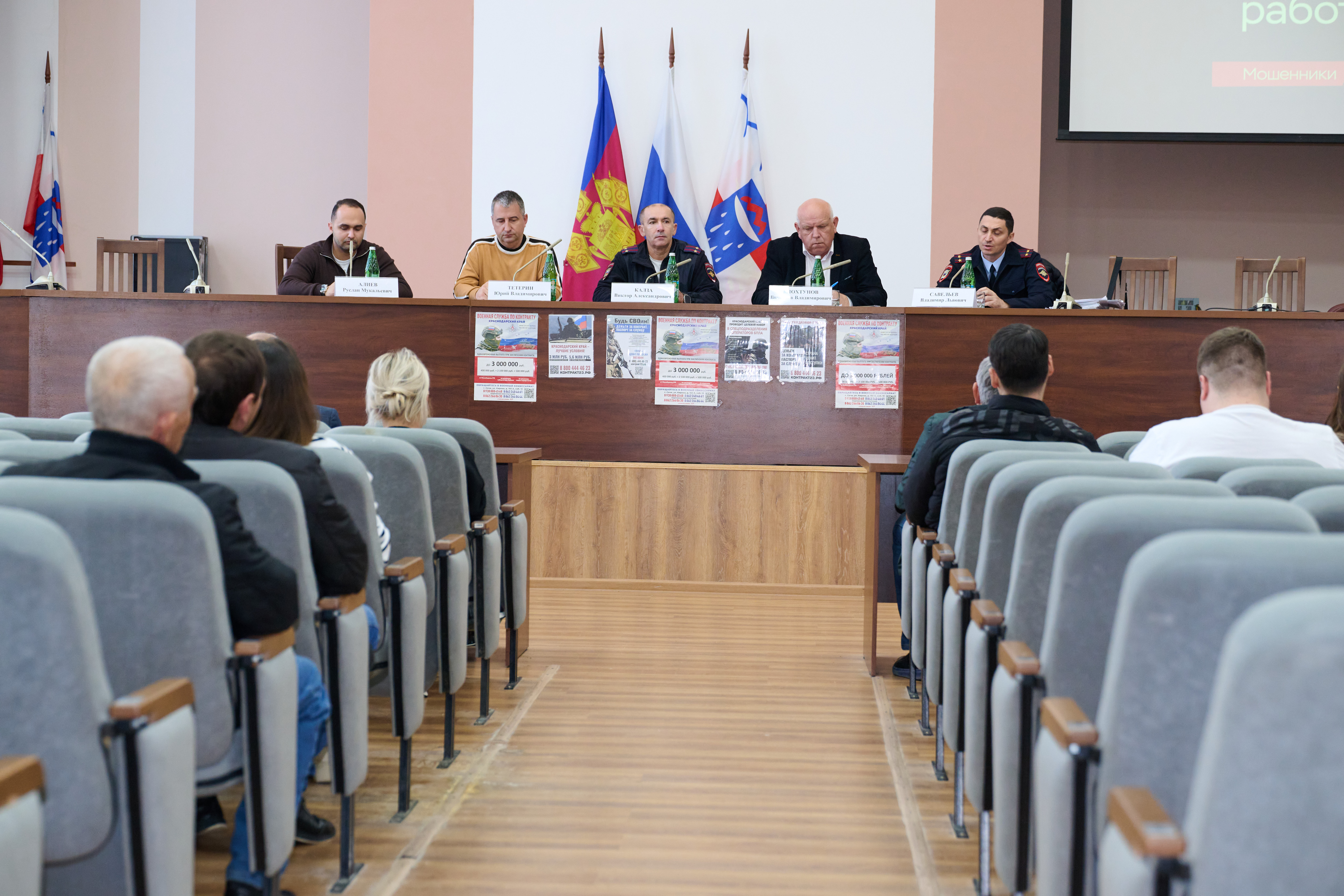 Обсуждались вопросы взаимодействия и обмена информацией между администрацией Центрального района, участковыми уполномоченными, отделом полиции, председателями СНТ и ГСК, а также представителями общественности. В частности, были затронуты темы борьбы с нелегальной трудовой миграцией и противодействия телефонному мошенничеству. Также участники встречи были проинформированы о целевом наборе в спецподразделение операторов БПЛА в Краснодарском крае и о заключении контрактов с Министерством обороны РФ.