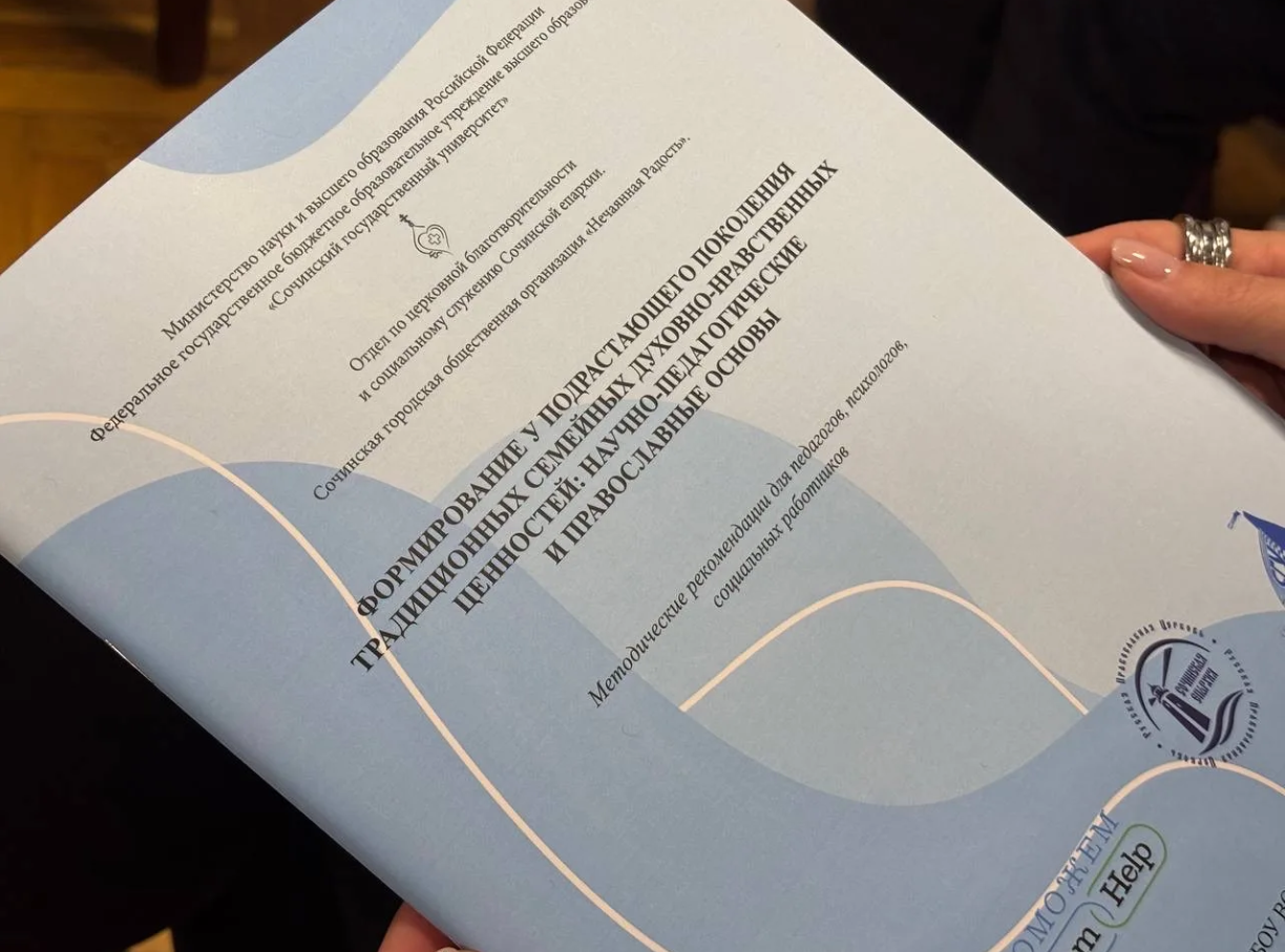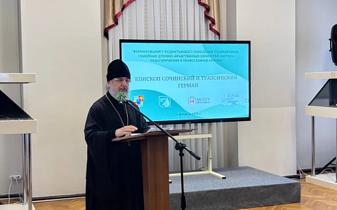 В Сочи состоялась презентация пособия для педагогов, психологов и социальных работников «Формирование у подрастающего поколения традиционных семейных духовно- нравственных ценностей: научно- педагогические православные основы», организованная Сочинской епархией. В мероприятии приняли участие заместитель главы администрации Сочи Елена Канюк, епископ Сочинский и Туапсинский Герман, представители администрации Сочи и духовенства, педагогической общественности.
