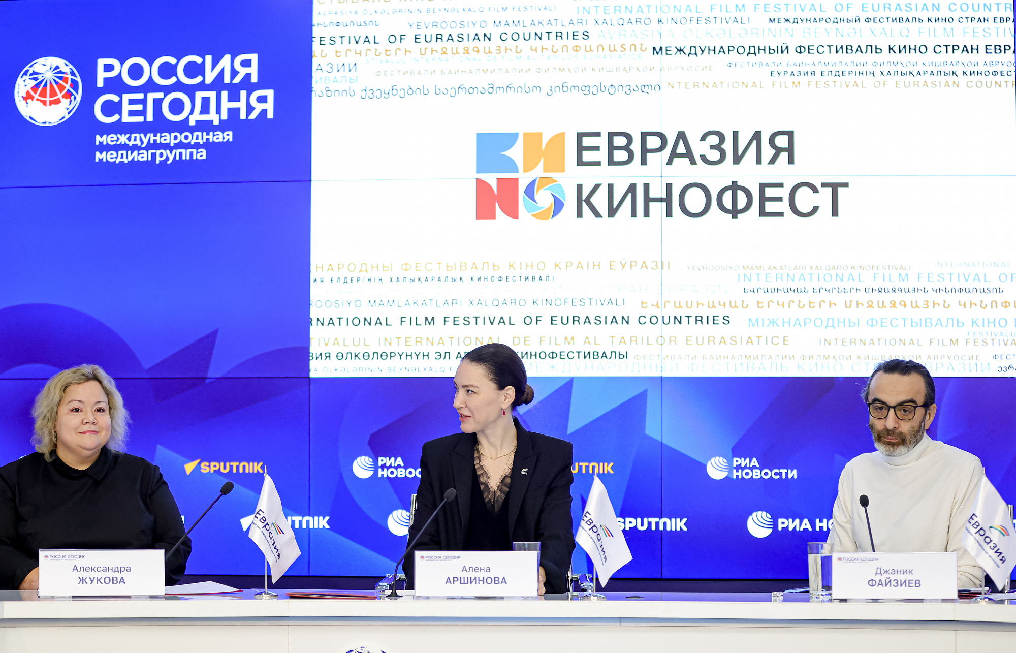 В Сочи с 13 по 19 июня пройдет III Международный фестиваль кино стран Евразии «Евразия-Кинофест». По этому поводу сегодня в московском пресс-центре «РИА Новости» прошла пресс-конференция с участниками мероприятия: депутатом Госдумы РФ, председателем Совета АНО «Евразия» Алёной Аршиновой, президентом III МКФ "Евразия-Кинофест", российским и узбекским киноактёром, режиссёром кино и телевидения, сценаристом и продюсером Джаником Файзиевым, режиссёром, лауреатом Международного фестиваля кино стран Евразии «Евразия-Кинофест» Артаком Арутюняном и другими представителями оргкомитета фестиваля. Тема кинофестиваля в этом году сформулирована через аббревиатуру КИНО - «Культура. История. Наследие. Образ».