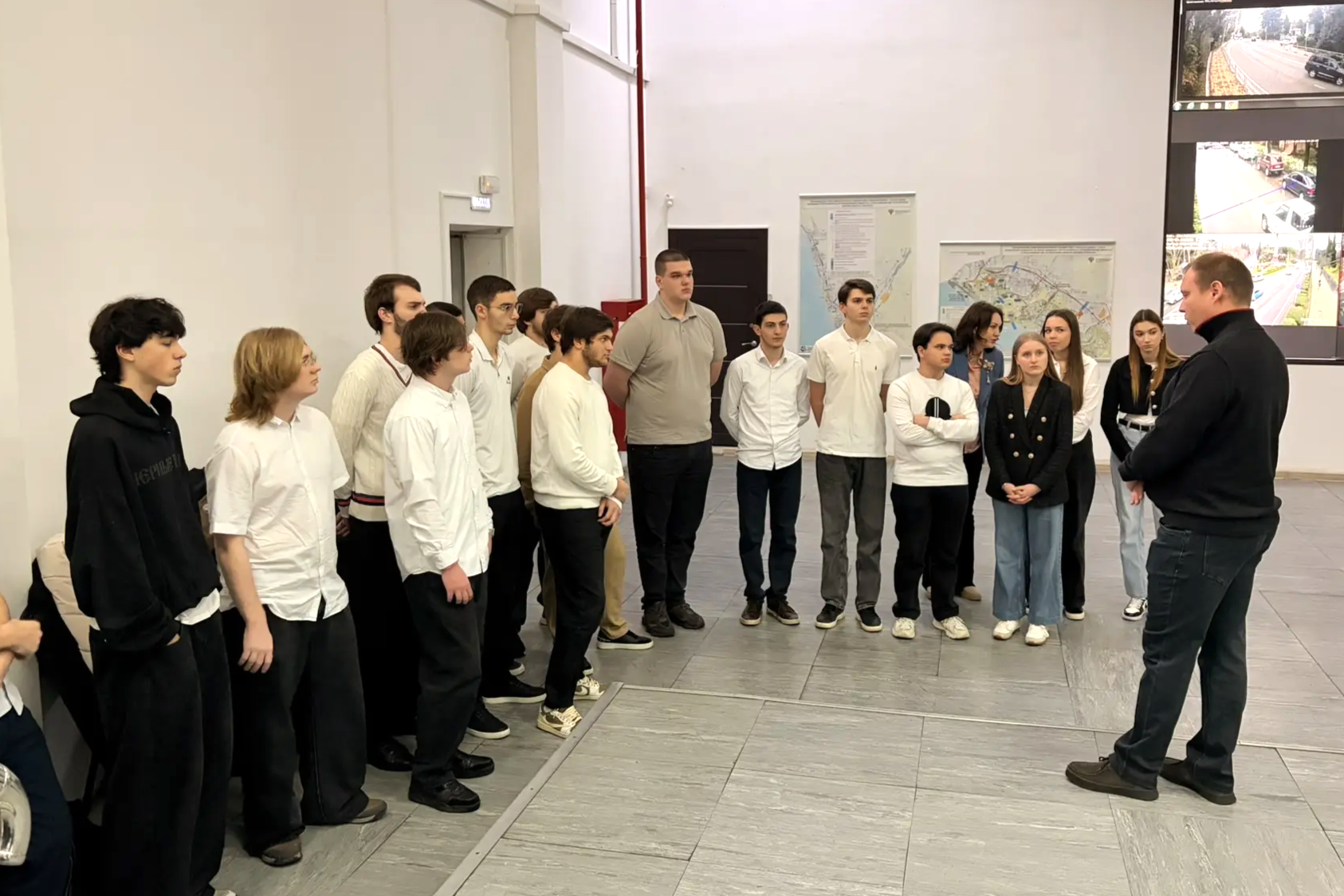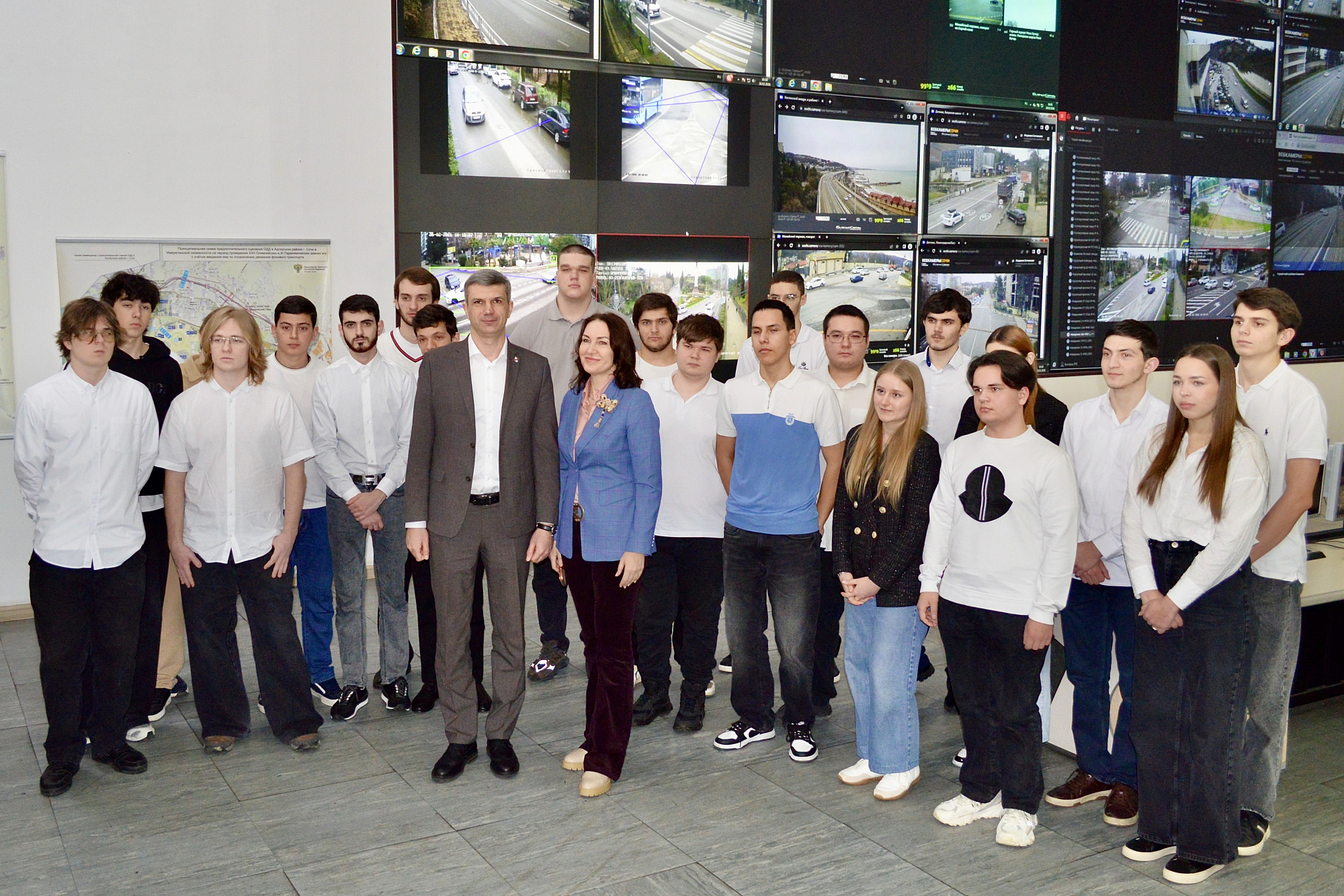 Более 20 будущих специалистов посетили Центр организации дорожного движения МКУ города Сочи «Управление автомобильных дорог», где в режиме реального времени ведется мониторинг дорожно-транспортной сети курорта. Сотрудники познакомили гостей с ключевыми направлениями своей работы, провели для них краткий обзор специализированных программ и ответили на вопросы. Эта экскурсия позволила обучающимся в действии понаблюдать за операторами, которые в реальном времени следят за состоянием дорожной ситуации через видеокамеры города. Также студенты пообщались заместителем главы Сочи Вячеславом Бауэром.
