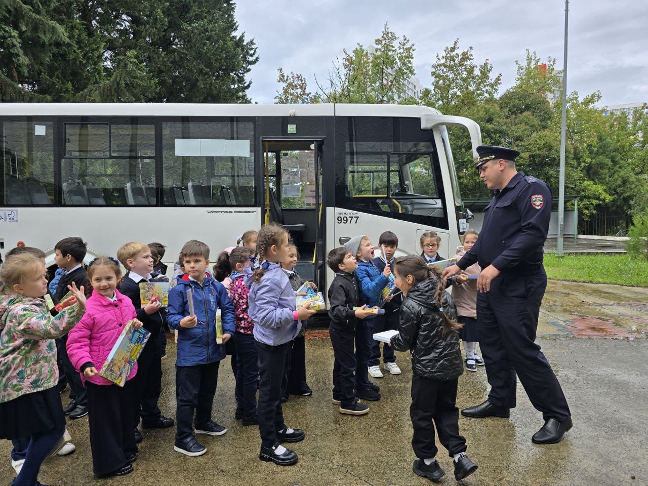 В ее рамках в гимназии №15 имени Н. Н. Белоусова одна из городских компаний-перевозчиков, ООО «Транс-Балт», совместно с сотрудниками ГИБДД и ДПС УВД города Сочи и представителями департамента транспорта и дорожного хозяйства провела просветительское мероприятие для учеников первых классов.