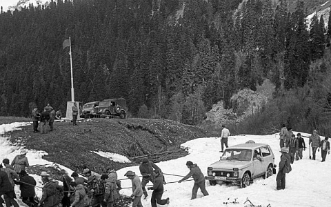 Фото: Георгий Анастасиади. Майский поход накануне Дня Победы к воинскому обелиску на развилке туристских троп перевалов Аишхо-1 и Аишхо-2, 1985 год.
