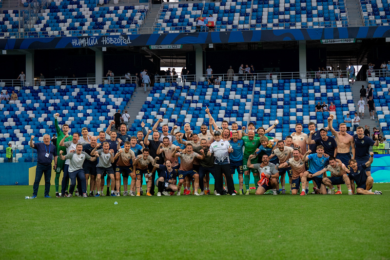 В первой игре плей-офф на стадионе «Фишт» «Сочи» в меньшинстве уступил со счетом 1:2. Соответственно, в ответном матче в Нижнем Новгороде сочинской команде нужна была победа с разницей в два мяча, которая была одержана, несмотря на давление чужих трибун. Судьба встречи была решена еще в первом тайме. На 21 минуте счет открыл Кирилл Заика. Под занавес первого тайма вратарю хозяев Никите Медведеву пришлось доставать мяч из сетки еще дважды. Все, чем смогли ответить нижегородцы, – гол с пенальти на 83 минуте.