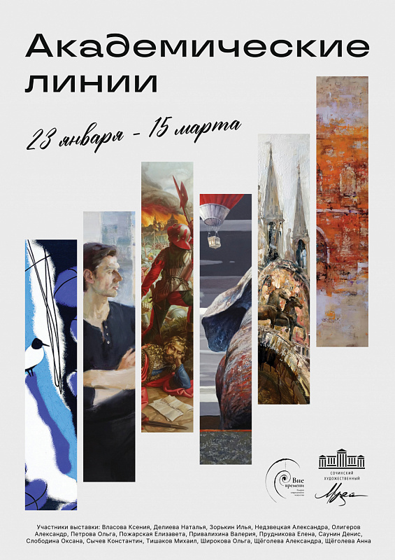 23 января, в пятницу, в 15.00 в Сочинском художественном музее им. Д.Д. Жилинского откроется выставка «Академические линии», организованная международной онлайн-галереей «Вне времени», основанной в Санкт-Петербурге в 2024 году.