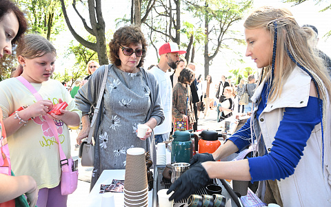 В чайном городке под открытым небом сегодня и 1 июня все желающие могут бесплатно продегустировать свыше тридцати сортов черноморского чая, выращенных на Юге России, включая редкие органические: белый, желтый, зеленый, красный, улуны, шэн-пуэр, разновидности габа-чая.