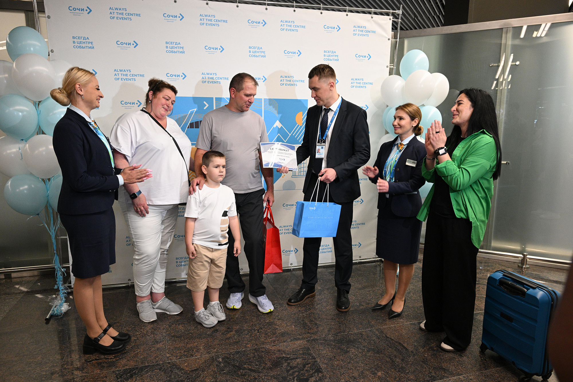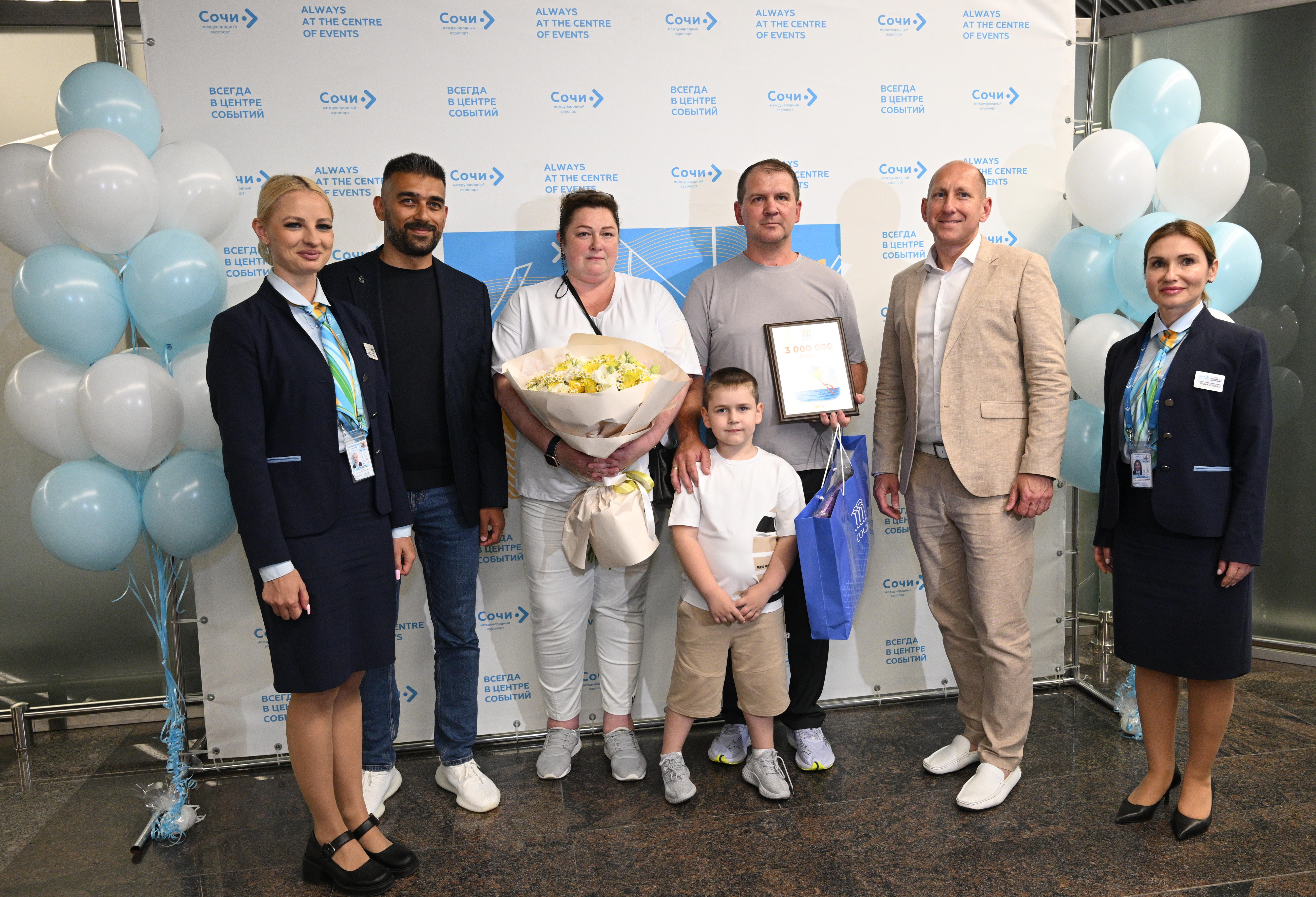 Юбилейным трехмиллионным туристом с начала года стал Юрий Пирог, прилетевший из Москвы в Сочи на отдых с женой и внуком. Гостя торжественно встретили в аэропорту представители администрации курорта, руководство воздушной гавани и отеля, в котором турист забронировал номер. Они вручили памятный сертификат, сертификат на обслуживание в зале повышенного комфорта и подарки для всей семьи.