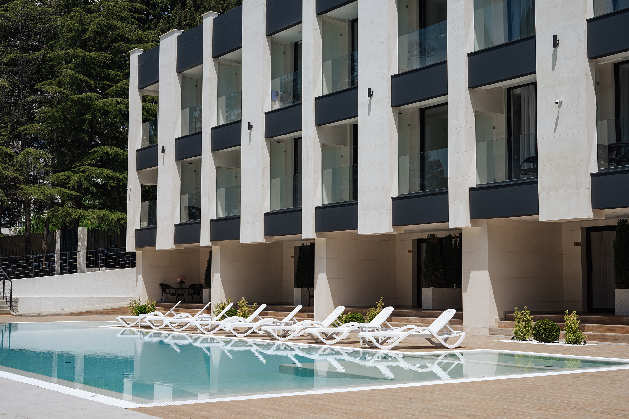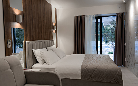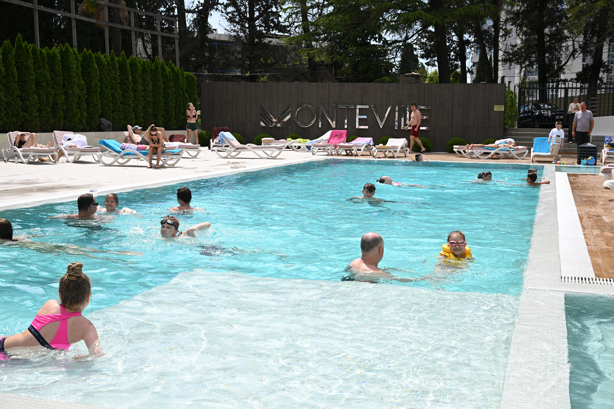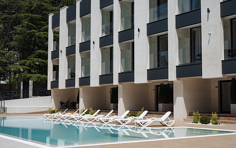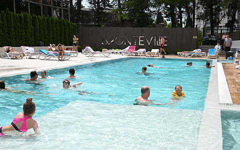 Для отдыха семья Пирог выбрала клубный апарт-отель «Монтевиль by Adamand Resort 4*» с подогреваемым открытым бассейном и закрытой территорией, расположенный в Хостинском районе курорта.