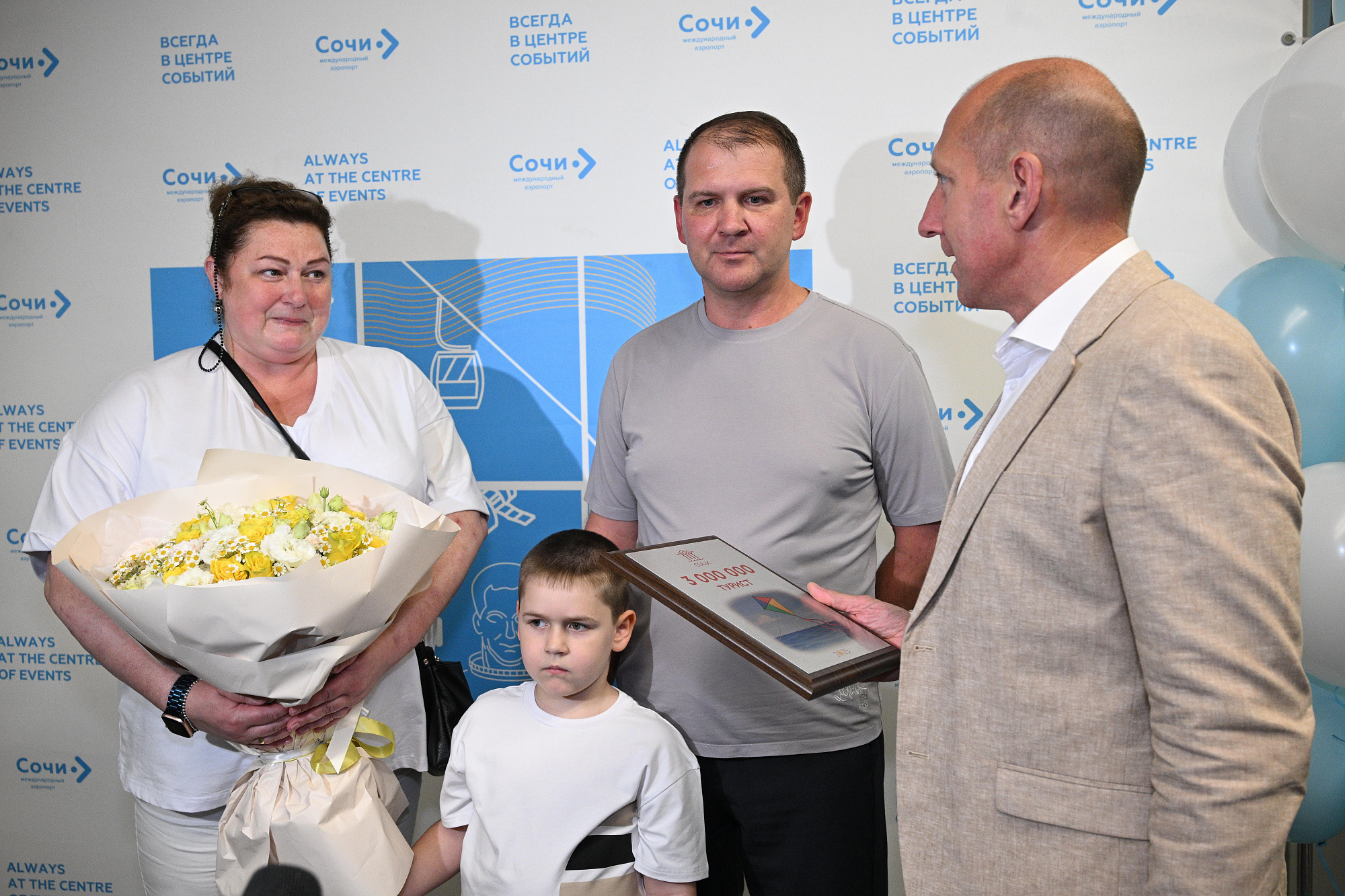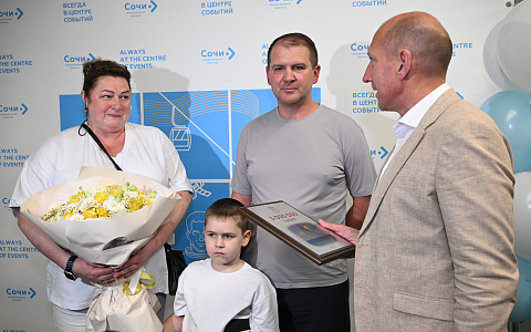 – Сочи продолжает бить рекорды популярности среди туристов. В середине июня встречаем трехмиллионного туриста – на неделю раньше, чем в прошлом году. Рост турпотока в среднем отмечаем на уровне 5%. В городе на сегодняшний день единовременно отдыхает более 160 тысяч гостей из нашей страны и зарубежья. Сочи традиционно предоставляет качественный сервис, широкий выбор предложений для размещения, активного отдыха и услуг. В минувшие двое суток Сочи был во власти циклона, однако непогода не повлияла на курортный сезон. Наш юбилейный гость прибыл в город на неделю, поэтому у него и семьи будет возможность в полной мере оценить все достоинства Сочи, – отметил глава Сочи Андрей Прошунин.