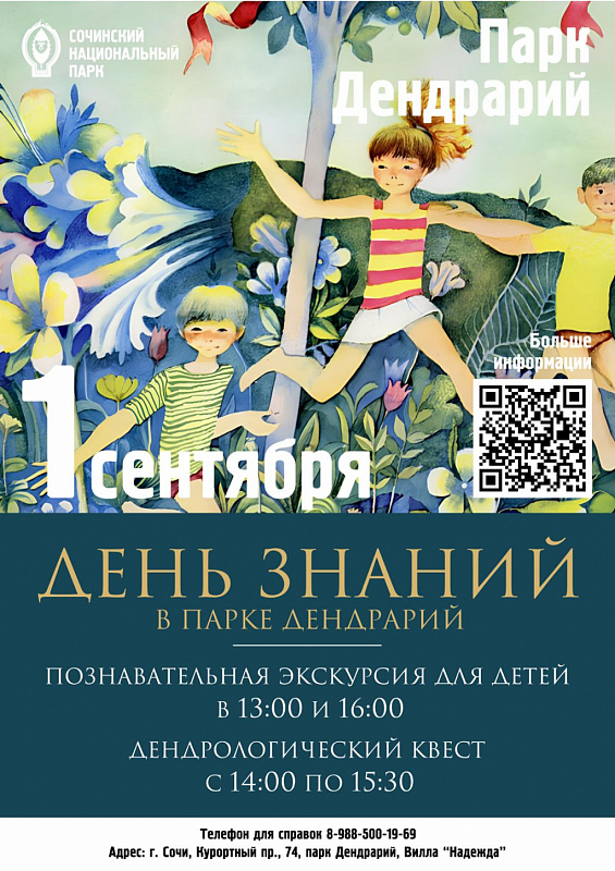 1 сентября 2025 года в День знаний в парке Дендрарий для детей и их родителей пройдут бесплатные познавательные экскурсии и дендрологический квест.