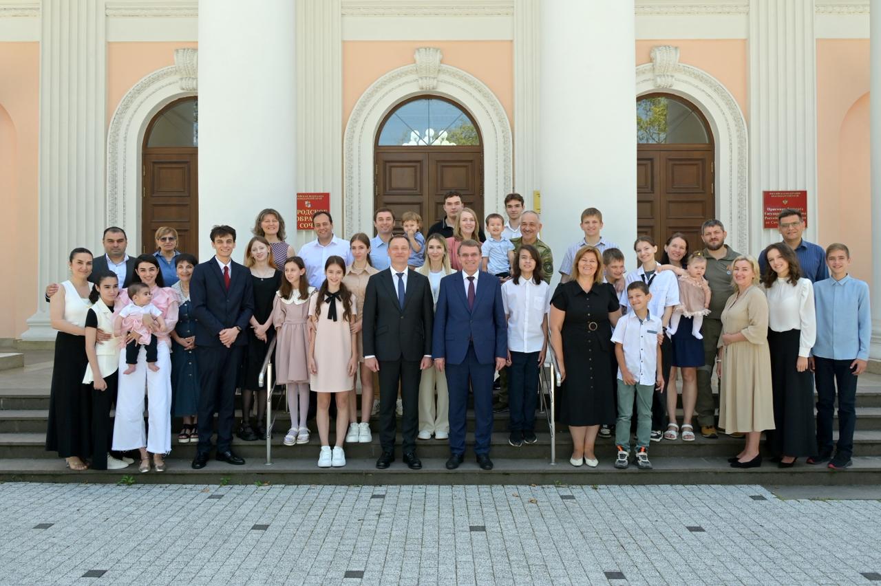 За особые заслуги были награждены шесть семей, состоящие в браке свыше 20 лет и воспитывающие трех и более детей. В числе награжденных династии сочинских спортсменов и тренеров, педагоги, инженеры, общественные деятели, военнослужащие.