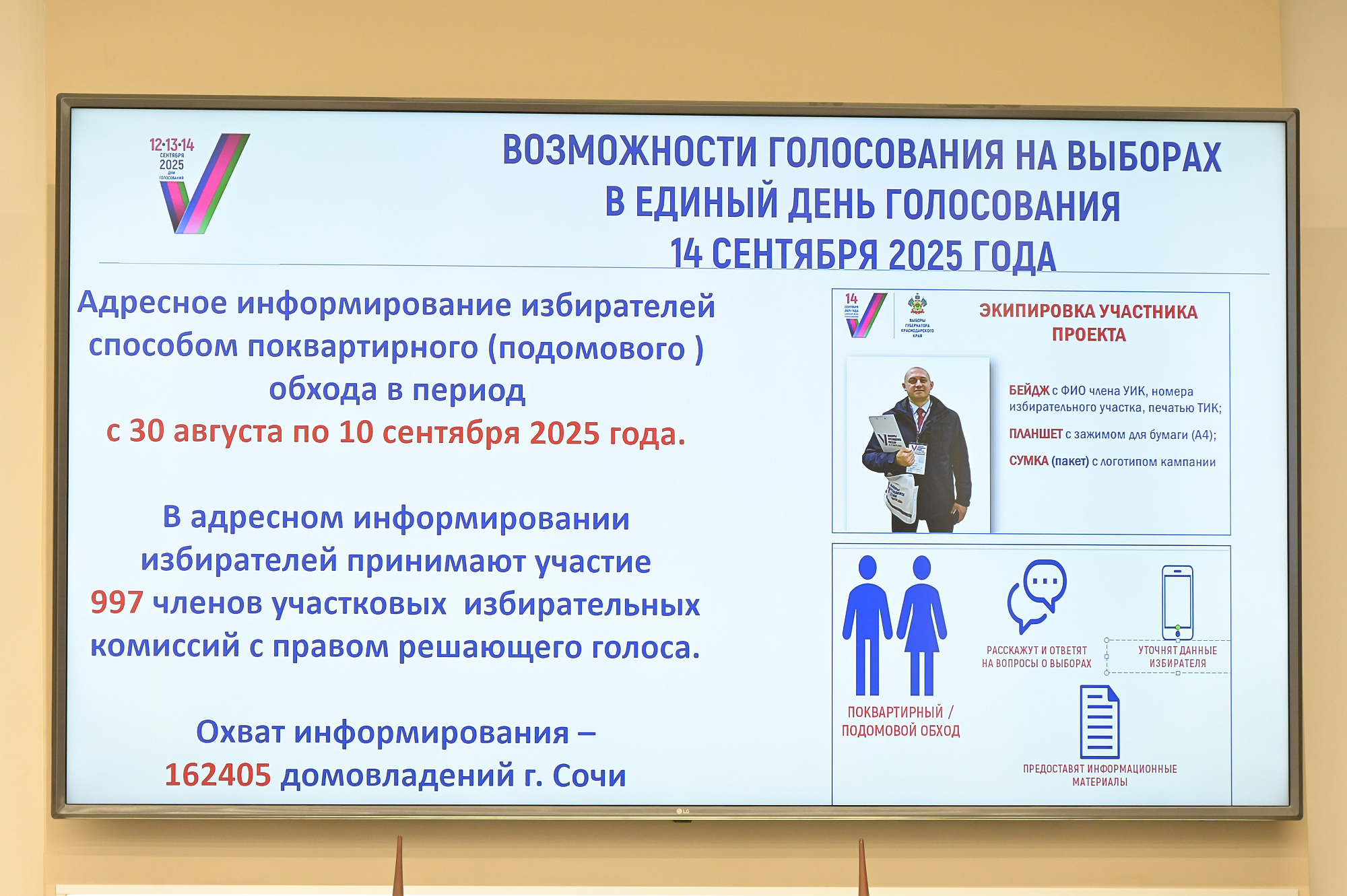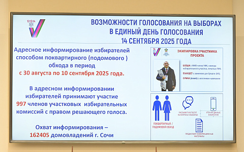 В Сочи с 30 августа по 10 сентября пройдет адресное информирование избирателей. В поквартирных обходах задействуют около тысячи членов участковых избирательных комиссий с правом решающего голоса.