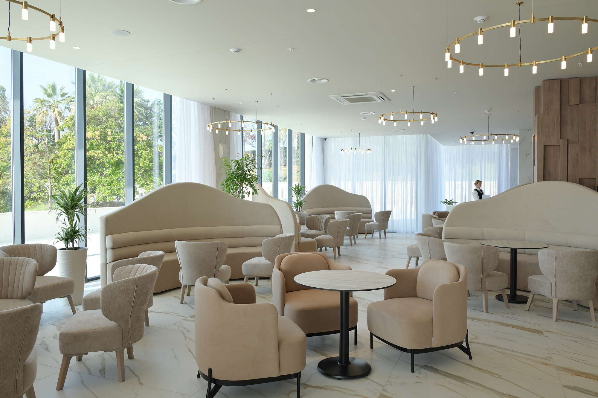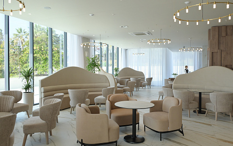 Завершено бережное преобразование советского наследия курортной архитектуры в современный объект с высокими стандартами гостеприимства. Полностью обновлены инженерные сети, преобразовано внутреннее пространство. В отеле появилось более 300 гостиничных номеров четырех категорий.