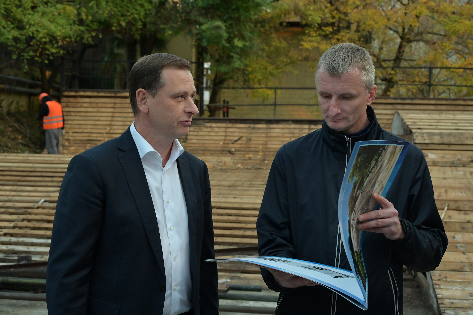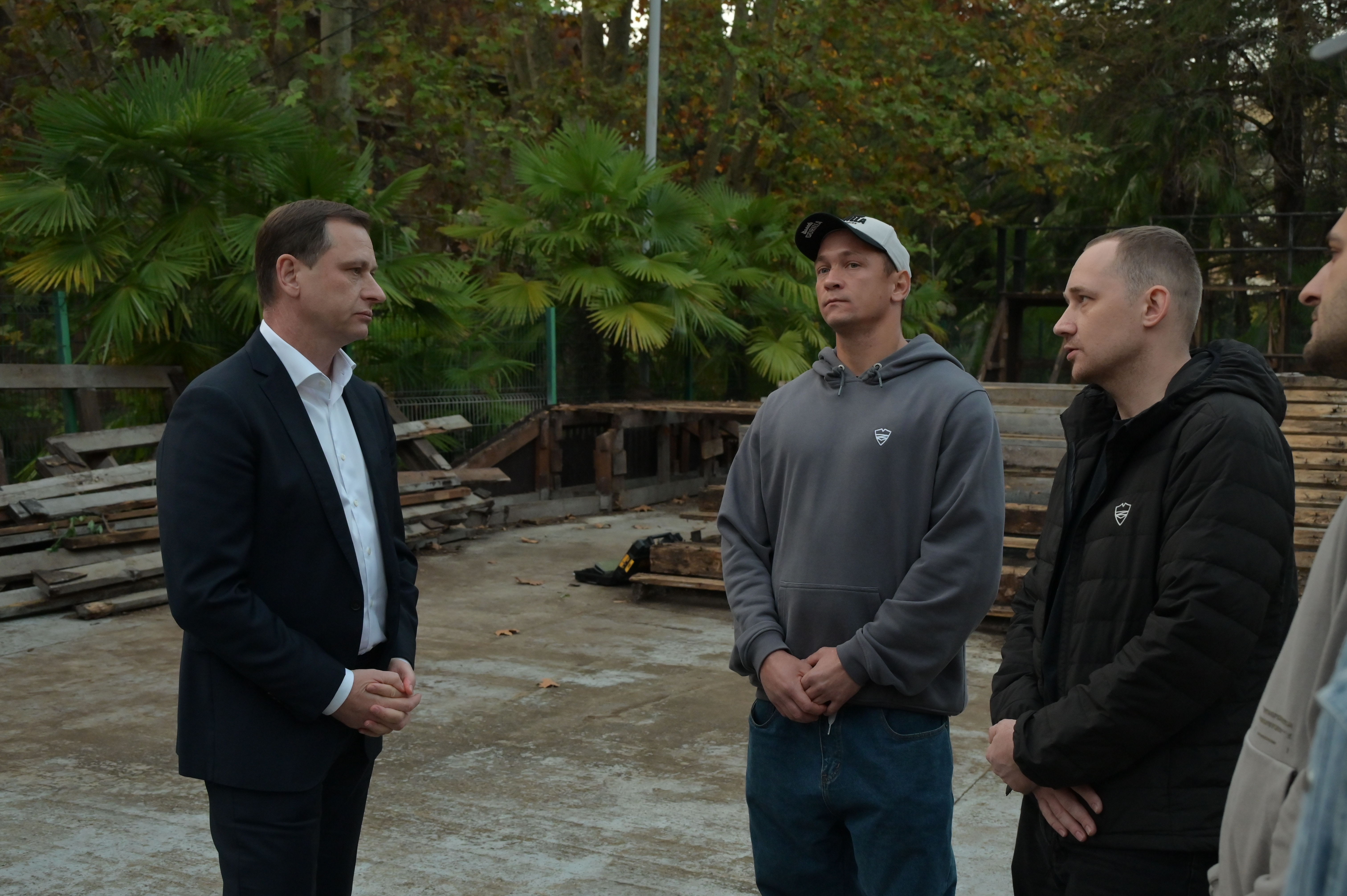 Экстрим-площадка в Центральном районе курорта – в процессе ремонта. Уже на 90 процентов произведен демонтаж верхнего покрытия из фанеры и непригодного деревянного каркаса, металлических скатов, разборка тумб. Глава города Андрей Прошунин посетил площадку, ознакомился с ходом работ, обсудил перспективы ремонта с подрядчиками и спортсменами.
