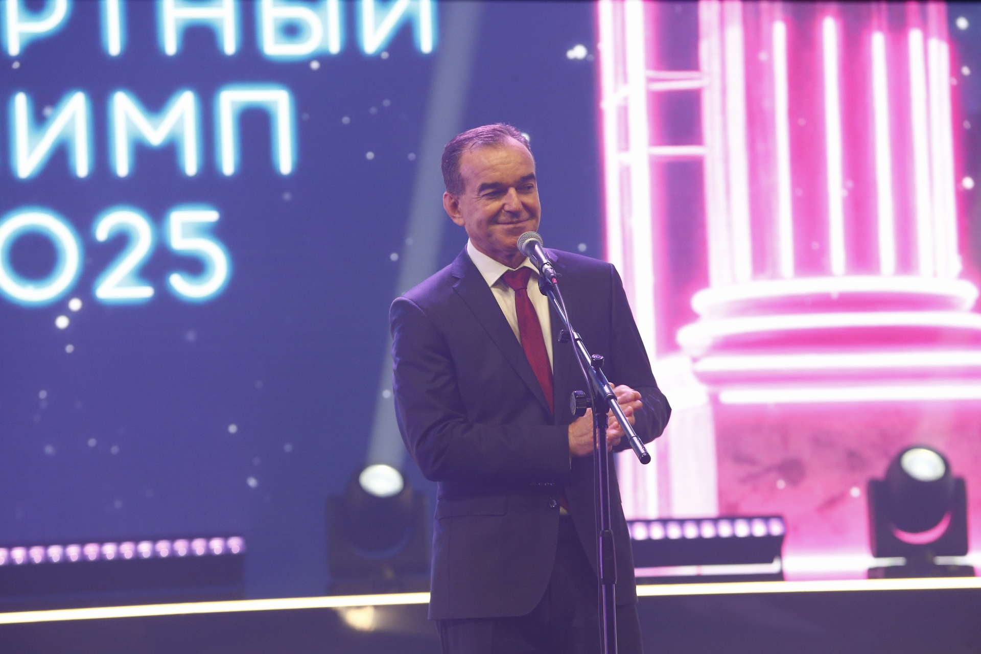 Губернатор Краснодарского края вместе с председателем ЗСК Юрием Бурлачко вручил награды работникам отрасли, которые в 2025 году конкурировали в 24 номинациях.