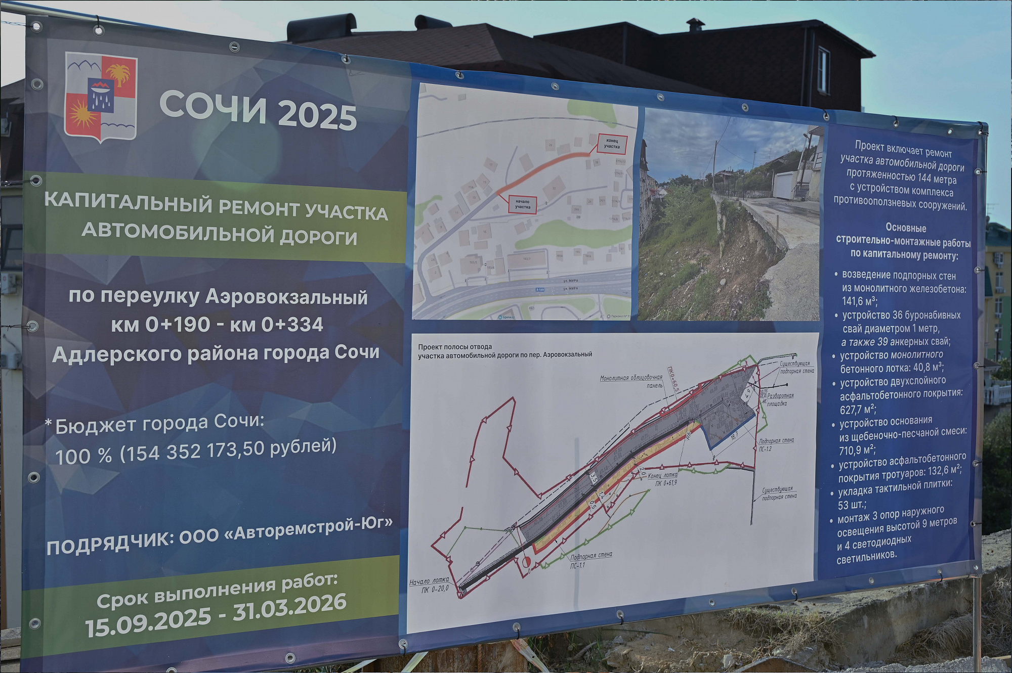 – В активной фазе работы по восстановлению участка автомобильной дороги по переулку Аэровокзальному, пострадавшему в результате оползня. Безопасность и удобство жителей Сочи – наш приоритет, мы в полной мере осознаем, насколько важна для горожан транспортная доступность. Мы решаем комплексную задачу: не просто устранить повреждения дорожного полотна, а провести капитальный ремонт и установить современные противооползневые сооружения, которые предотвратят подобные ситуации в будущем. На эти цели из бюджета выделено более 150 миллионов рублей. Работы ведутся в строгом соответствии с графиком, их окончание запланировано на март 2026 года. Буду держать на личном контроле вопрос соблюдения сроков и качества ремонта, – отметил глава Сочи Андрей Прошунин.