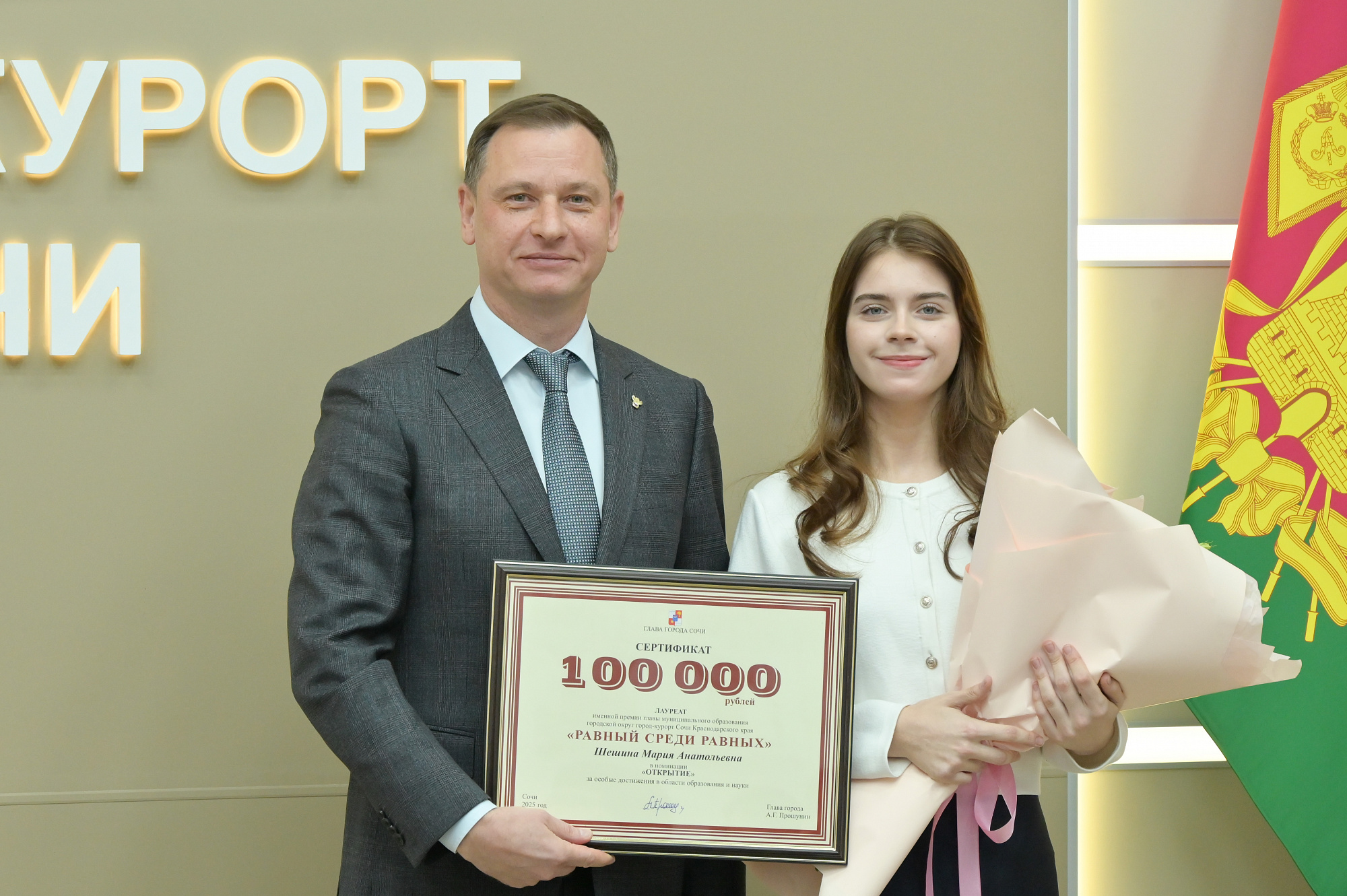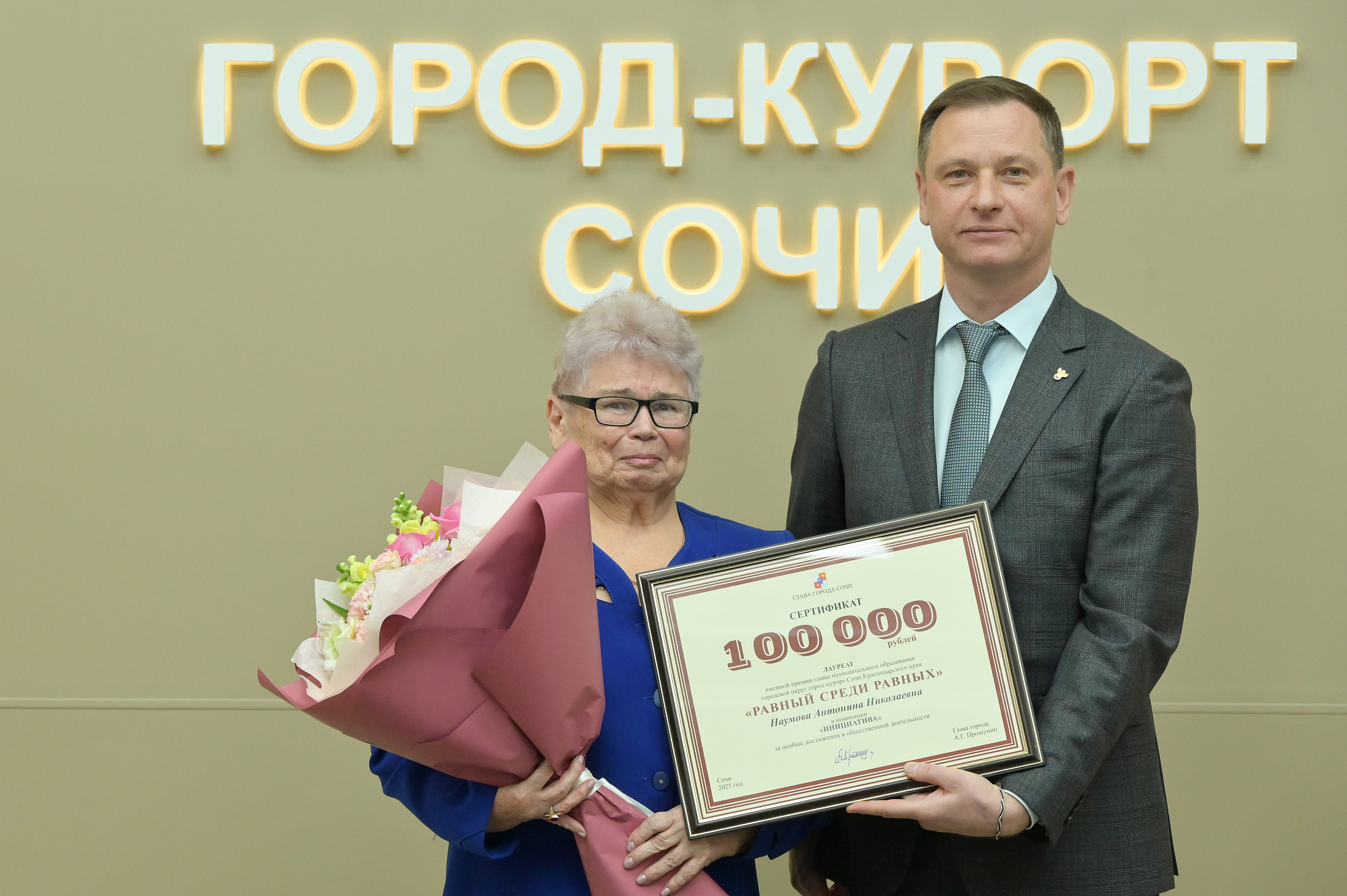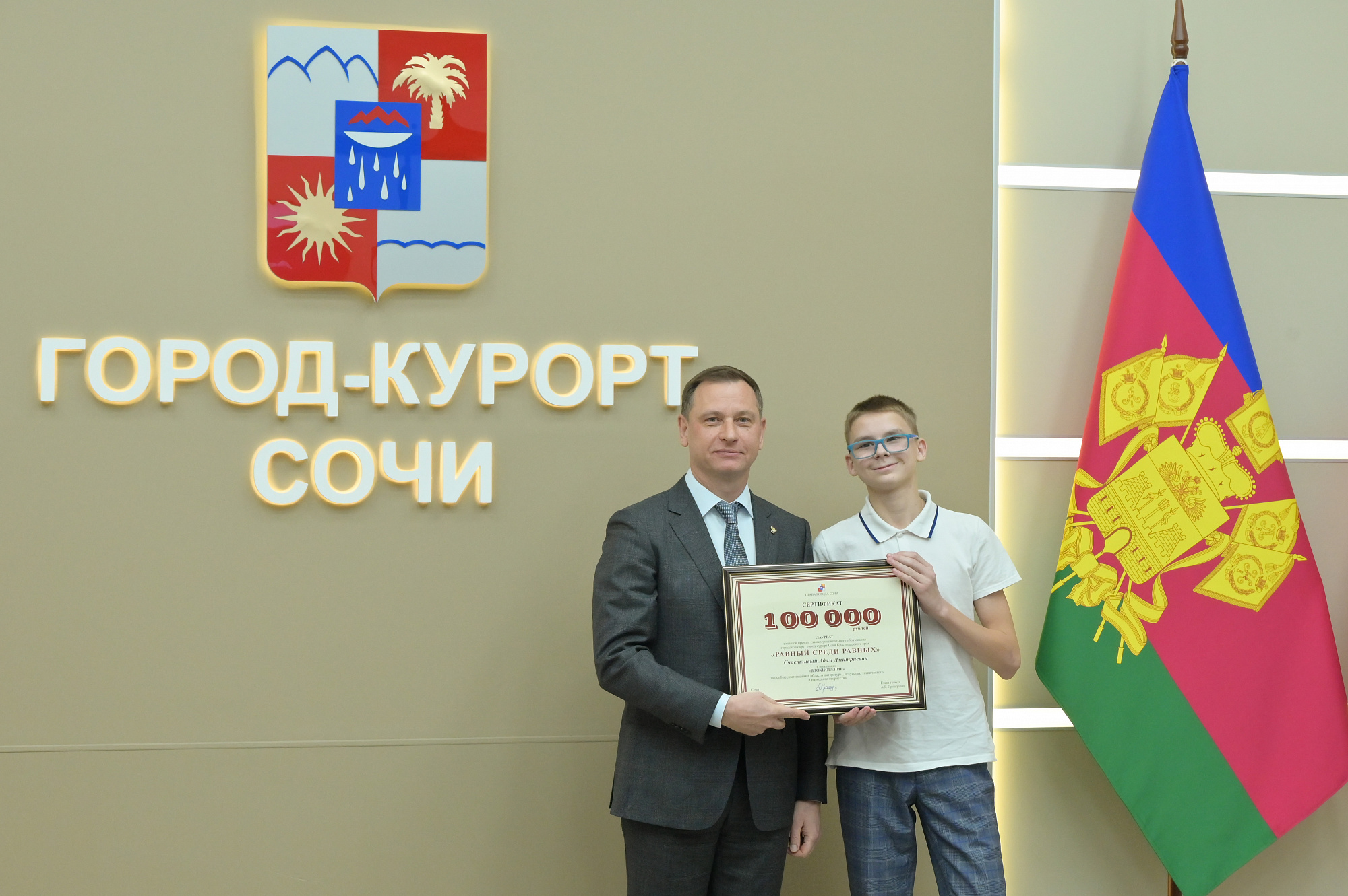 Вручение второй именной премии «Равный среди равных», приуроченное к Международному дню инвалидов, прошло в мэрии курорта. Победителями конкурса стали восемь сочинцев с инвалидностью, имеющих достижения в различных сферах жизни. Глава города пообщался с лауреатами, отметил их стойкость и заслуги, поздравил победителей премии и вручил сертификаты на 100 тысяч рублей.
