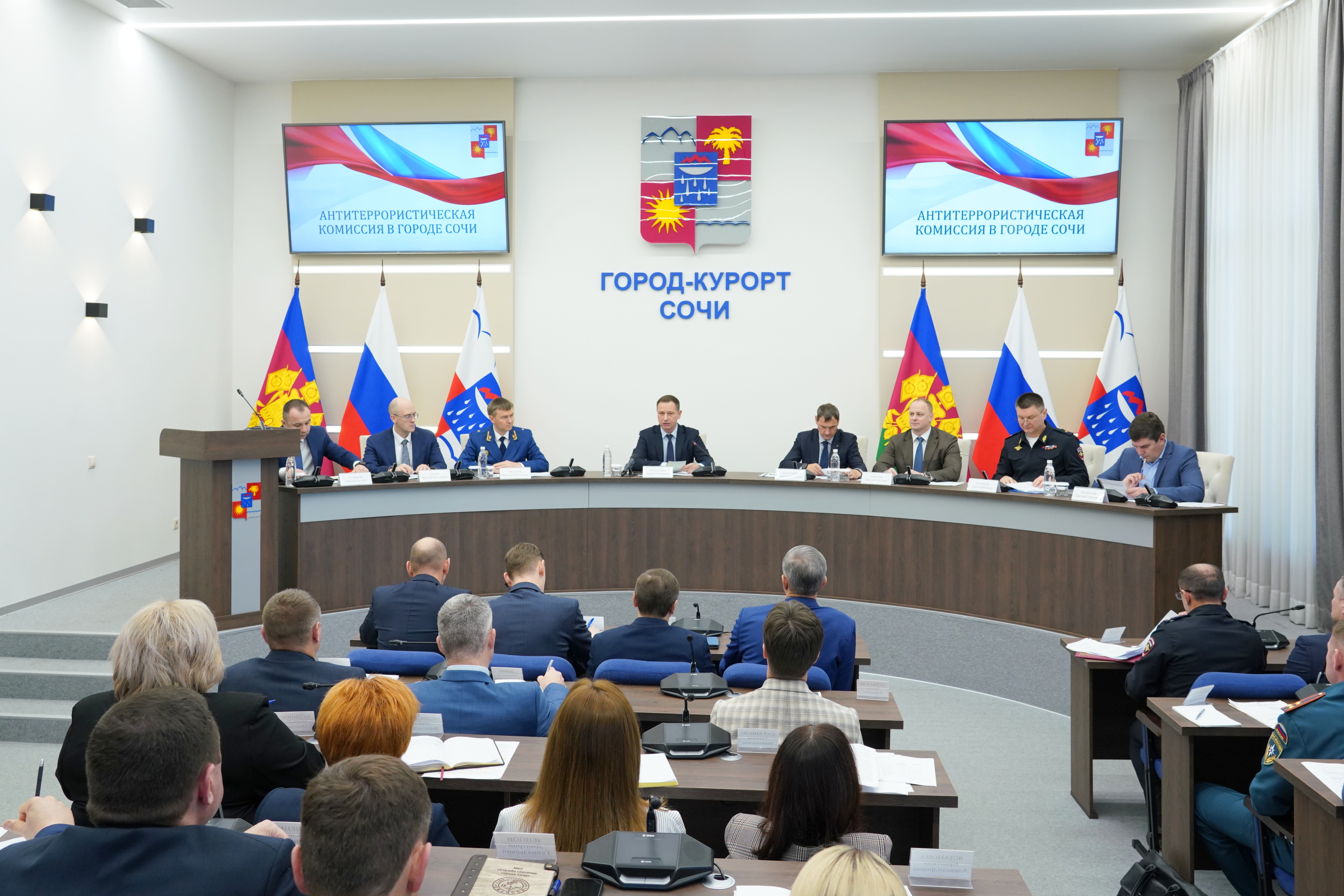 Очередное заседание городской антитеррористической комиссии состоялось в администрации Сочи под председательством главы города Андрея Прошунина. В нем приняли участие руководители и представители ФСБ, ФСО, Росгвардии, УВД, МЧС, органов прокуратуры, Следственного комитета, транспортной полиции, Министерства здравоохранения Краснодарского края, объектов транспортной инфраструктуры, топливно-энергетического комплекса, горнолыжных курортов, а также федеральной территории «Сириус».