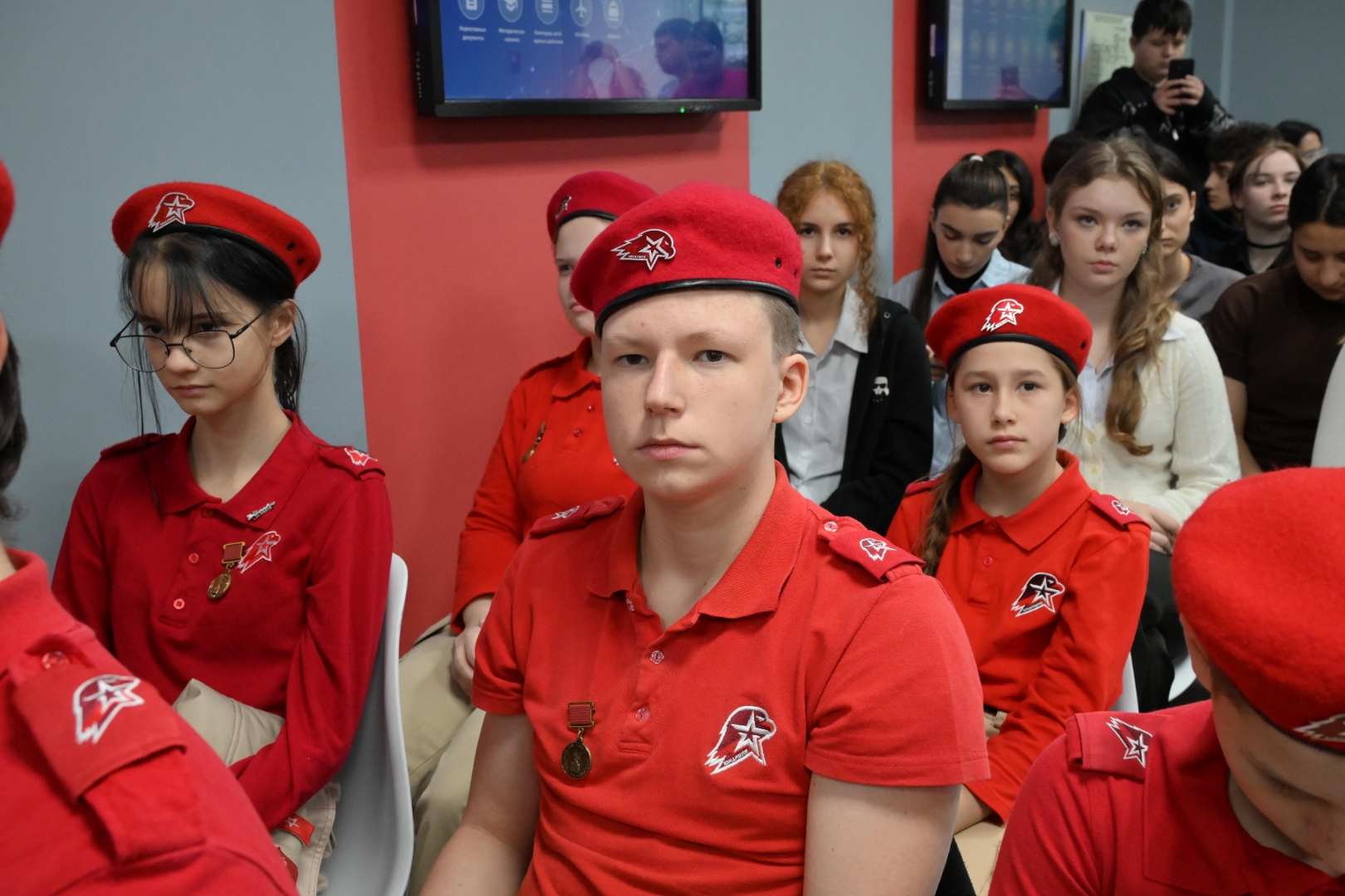 В преддверии Дня Героев Отечества в сочинском Доме Юнармии прошла встреча студентов, юнармейцев и воспитанников профильных военно-патриотических клубов с Героями Российской Федерации – Артемом Чумаровым и Артемом Катунькиным. В рамках Всероссийского проекта «Диалоги с героями» ветераны боевых действий, участники специальной военной операции пообщались с молодежью.