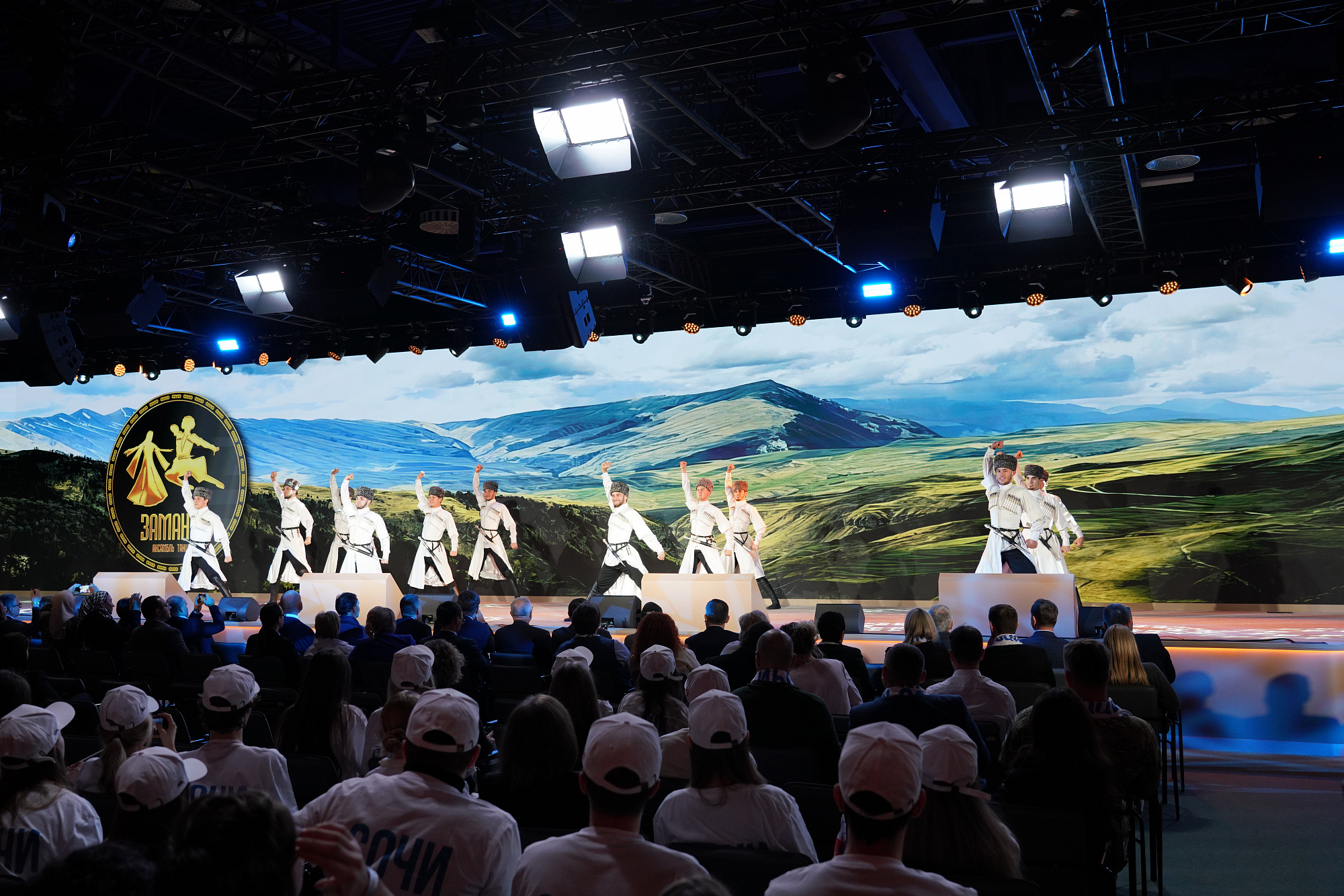 Творческую заявку Сочи представили лучшие национальные коллективы курорта. Их выступления под музыку народных инструментов создали атмосферу многогранной культуры курорта, в которой соединились дух приморского города, кубанских станиц, кавказских аулов и традиционное южное гостеприимство.