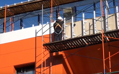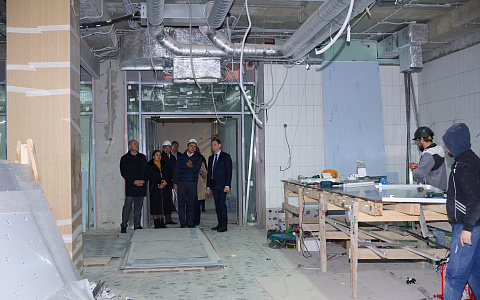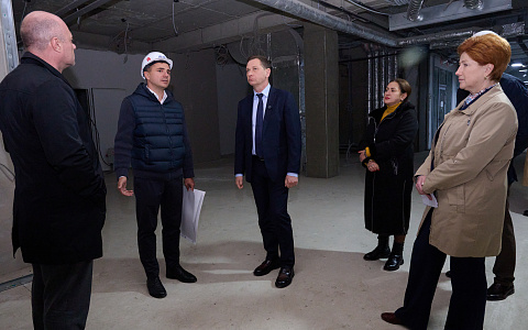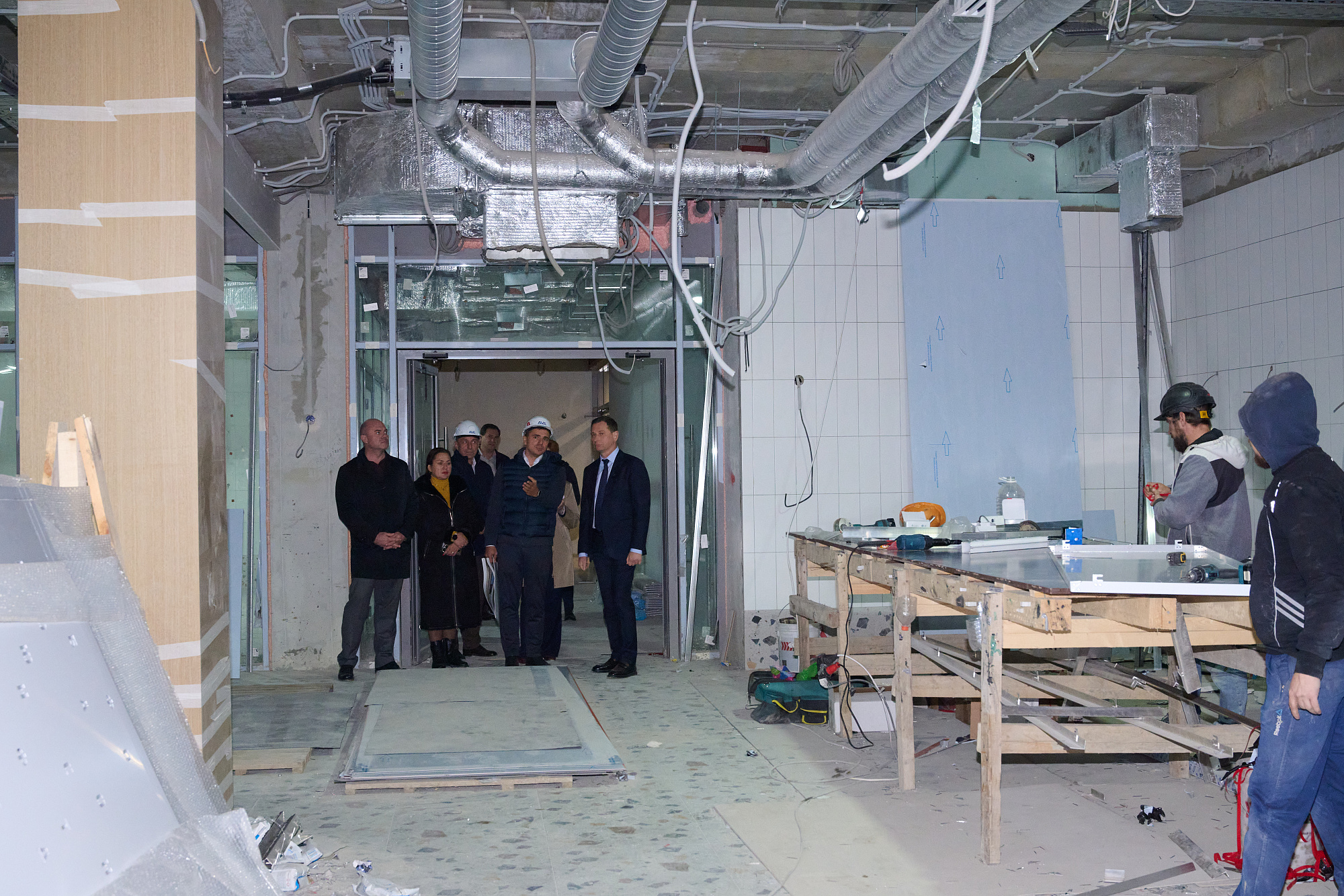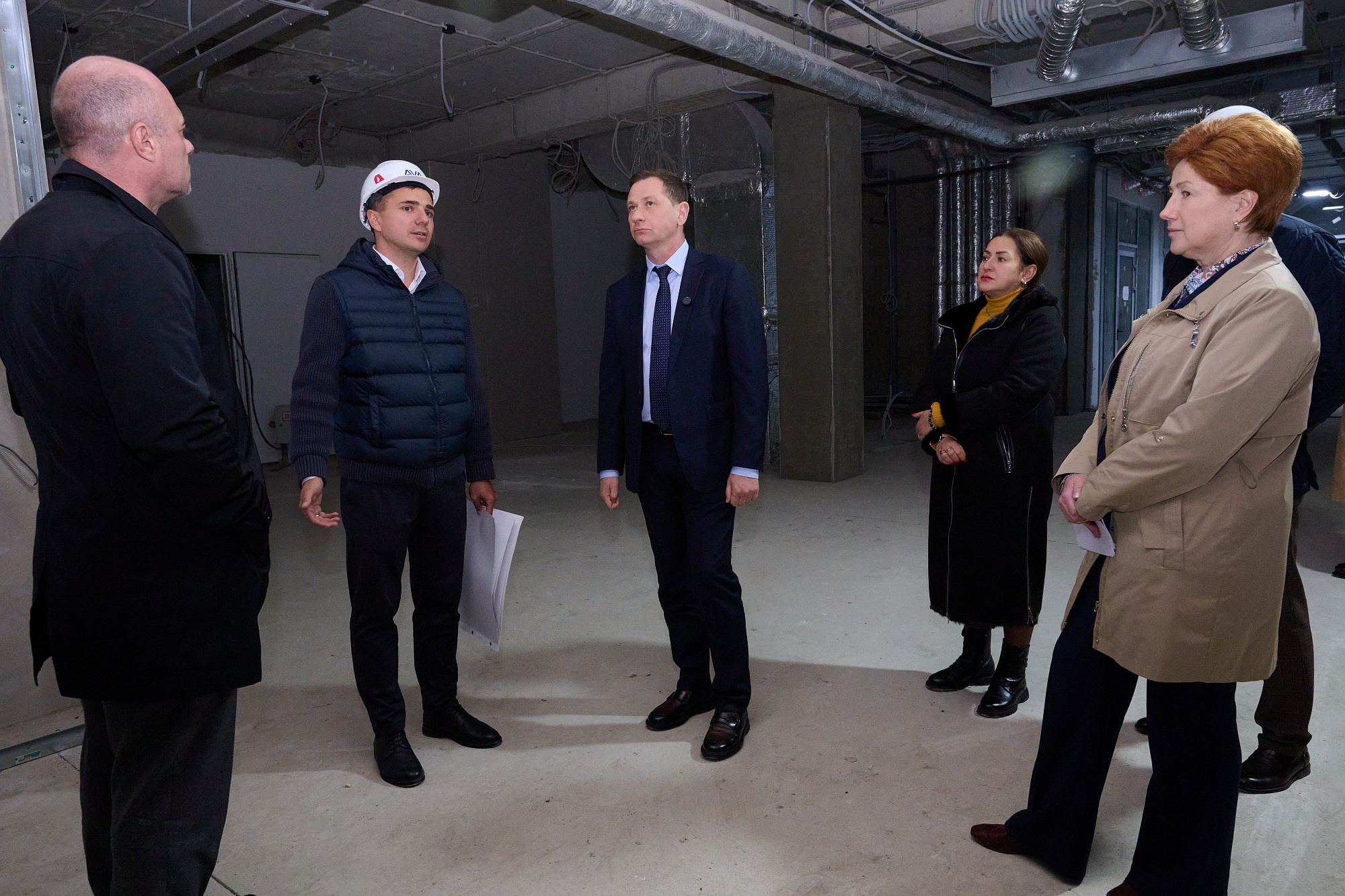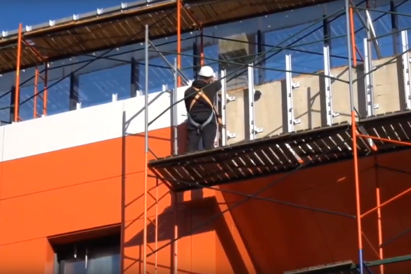 В настоящее время на строительной площадке завершаются устройство кровли, монтаж противопожарных систем и наружного освещения, прокладка внутренних и наружных инженерных сетей, а также фасадные работы. На объекте ежедневно задействовано более 210 специалистов.
