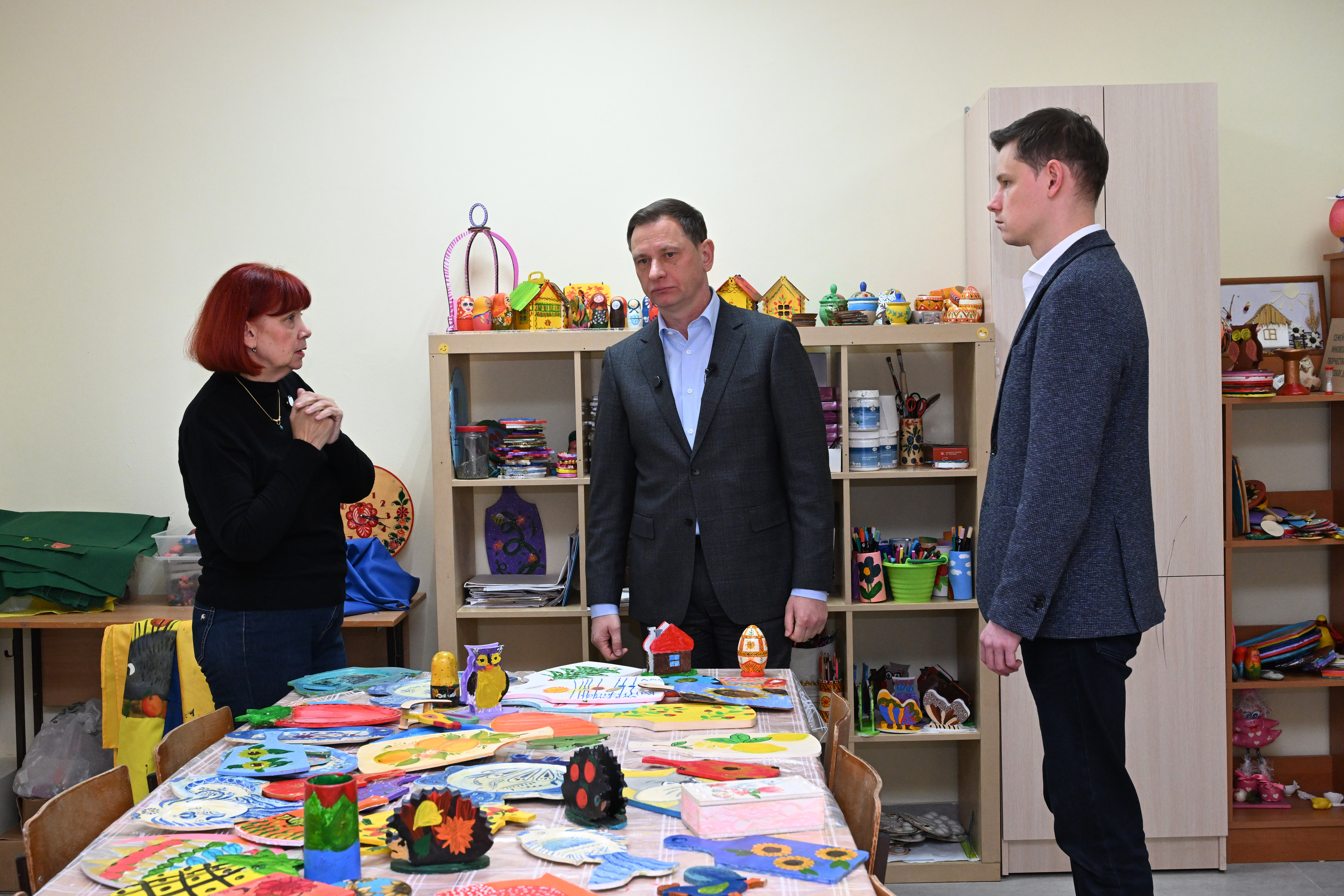 Мэр курорта Андрей Прошунин посетил центр в рамках рабочего объезда Центрального района, осмотрел помещения после проведенного в этом году ремонта, ознакомился с авторскими работами и арт-объектами созданными руками воспитанников.