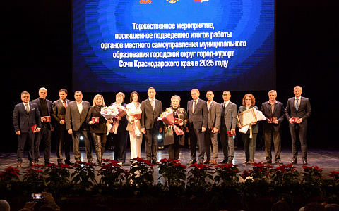 Торжественное мероприятие, посвященное подведению итогов деятельности органов местного самоуправления Сочи в 2025 году, состоялось в Зимнем театре. В нем приняли участие глава города Андрей Прошунин, председатель Городского Собрания Сочи Виктор Филонов, руководители правоохранительных, силовых структур, городских ресурсоснабжающих организаций, учреждений санаторно-курортной отрасли, представители общественных и образовательных организаций, жители Сочи.