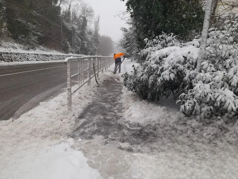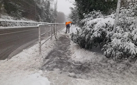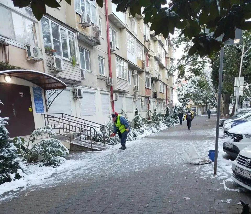 – Городской оперативный штаб продолжает работать, сотни людей и единиц техники круглосуточно участвуют в ликвидации последствий непогоды: расчистке дорог и тротуаров, вывозе снега, санитарной уборке территорий. На зимнем содержании улиц задействовали 227 единиц техники и почти 450 дорожных рабочих. За ночь силами коммунальных предприятий и «Кубань-Спас» убрано несколько упавших деревьев. Получали сообщения от жителей о точечных подвижках грунта на придомовых территориях, угрозы для жизни людей нет. В большинстве случаев последствия уже ликвидированы, штаб продолжает мониторинг ситуации. Сотрудники управляющих компаний мобилизовали усилия, чтобы придомовые территории и лестничные сходы оставались безопасными для жителей. Ответственность предпринимателей – десятиметровая зона в радиусе их объектов, – подчеркнул глава Сочи Андрей Прошунин.