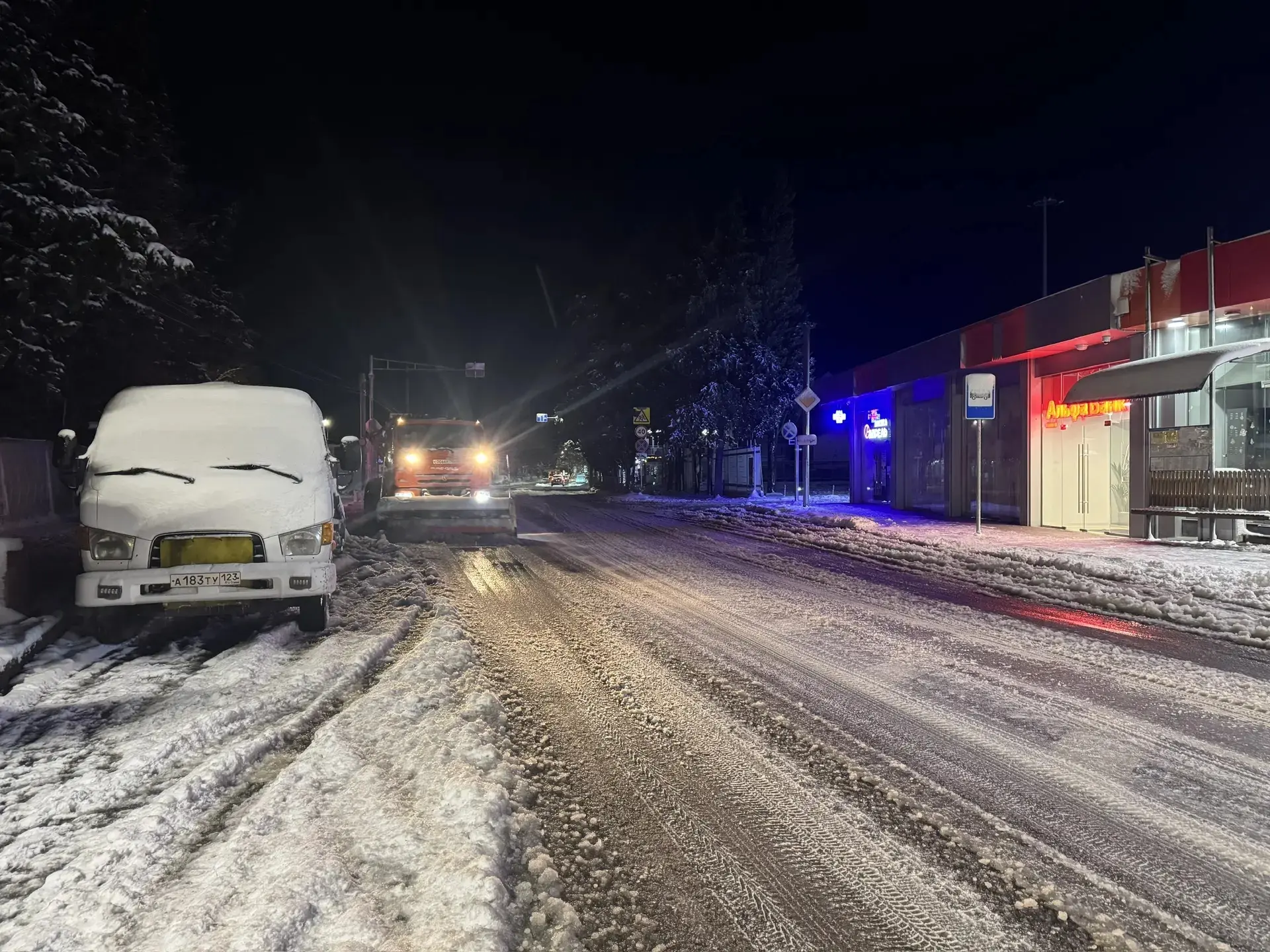 Действие штормового предупреждения синоптики продлевали до утра. В Лазаревском районе и в Краснополянском поселковом округе шел мокрый снег, местами сильный – до 28 мм в Солохауле. На побережье были осадки в виде дождя. К утру все федеральные и краевые дороги почищены, использовано 770 тонн противогололедных материалов.