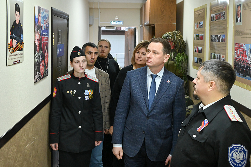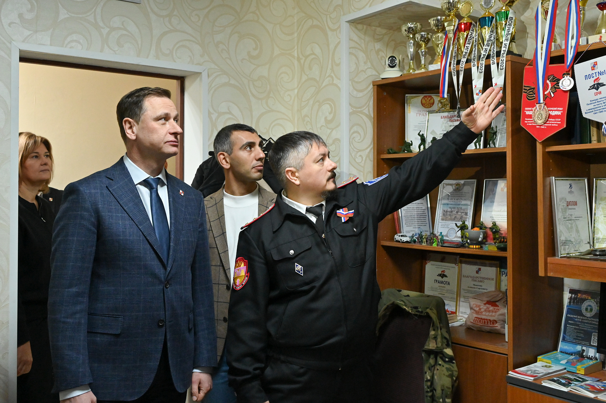 Экскурсию для мэра по помещениям клуба на улице Первомайской провели руководитель «Святогорца» Алексей Моисеев и лидер Сочинского отделения Союза казачьей молодежи Кубани Елизавета Скокова.
