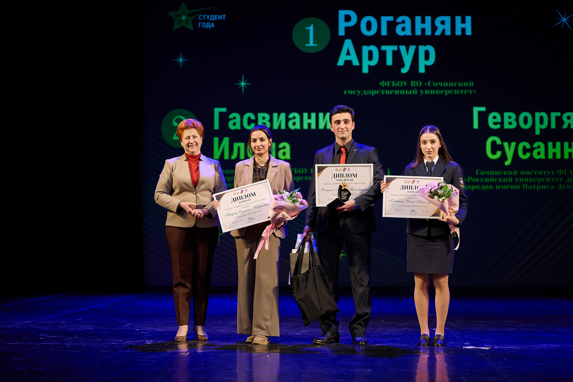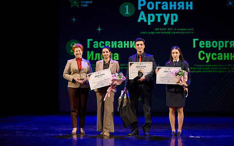 По итогам 2025 сочинские студенты года были награждены в номинациях «Активист года», «Волонтер года», «Интеллект года», «Медиа года», «Талант года», «Спортсмен года».