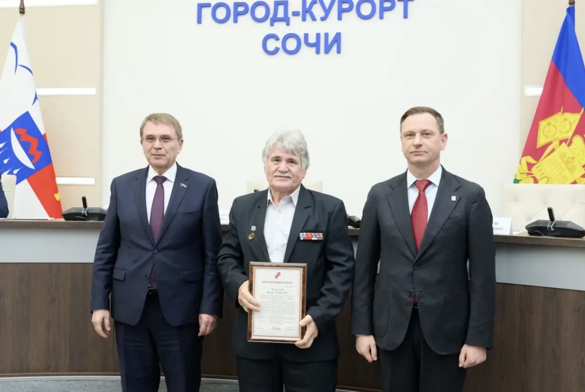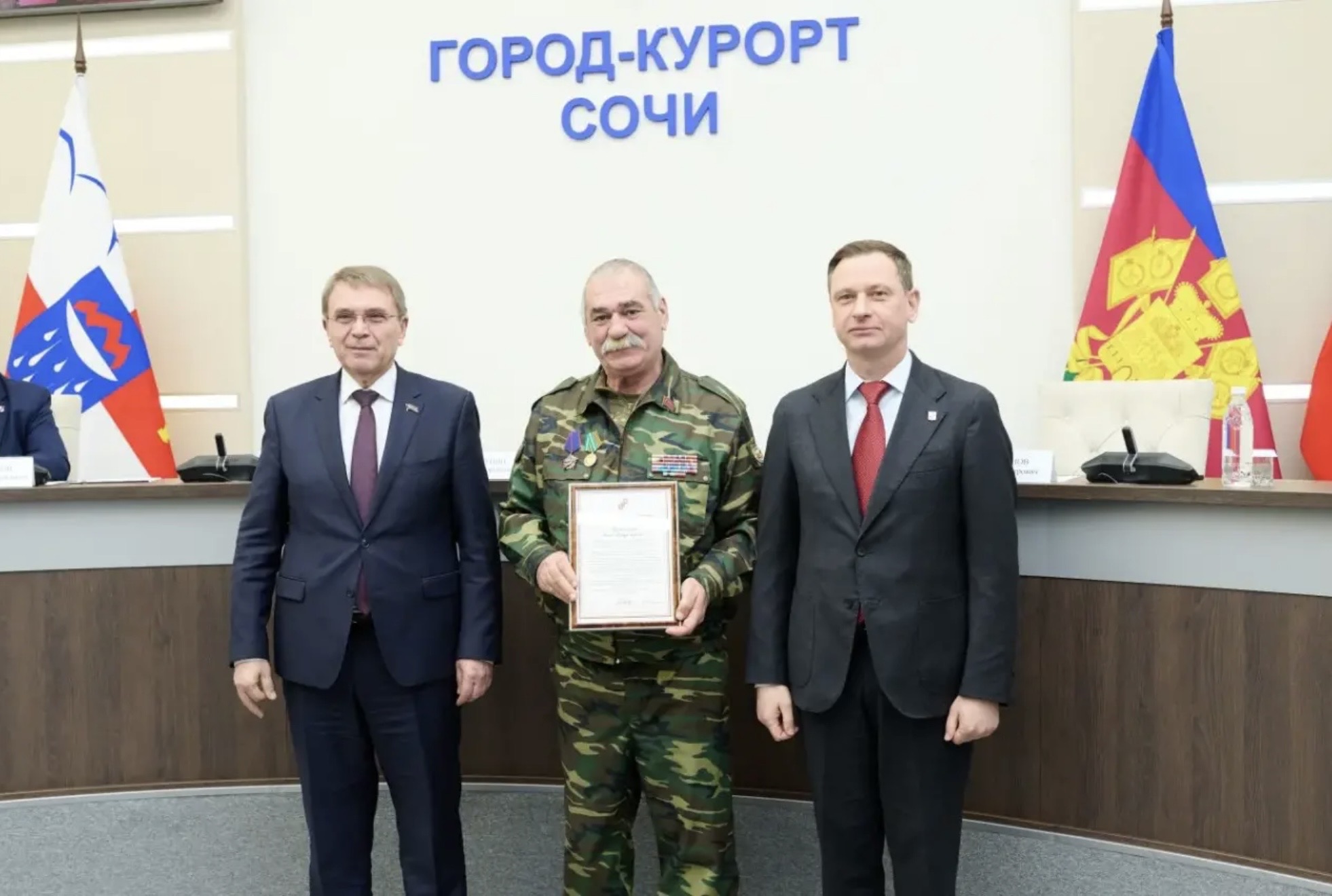 За активную работу по военно-патриотическому воспитанию и подготовке молодежи к военной службе, участие в организации сбора и передачи гуманитарной помощи ветеранам и инвалидам боевых действий и членам их семей Благодарственными письмами главы Сочи и Городского собрания Сочи были награждены руководители и актив Сочинского городского отделения Краснодарской региональной организации «Общероссийский Союз ветеранов Афганистана и специальных военных операций».