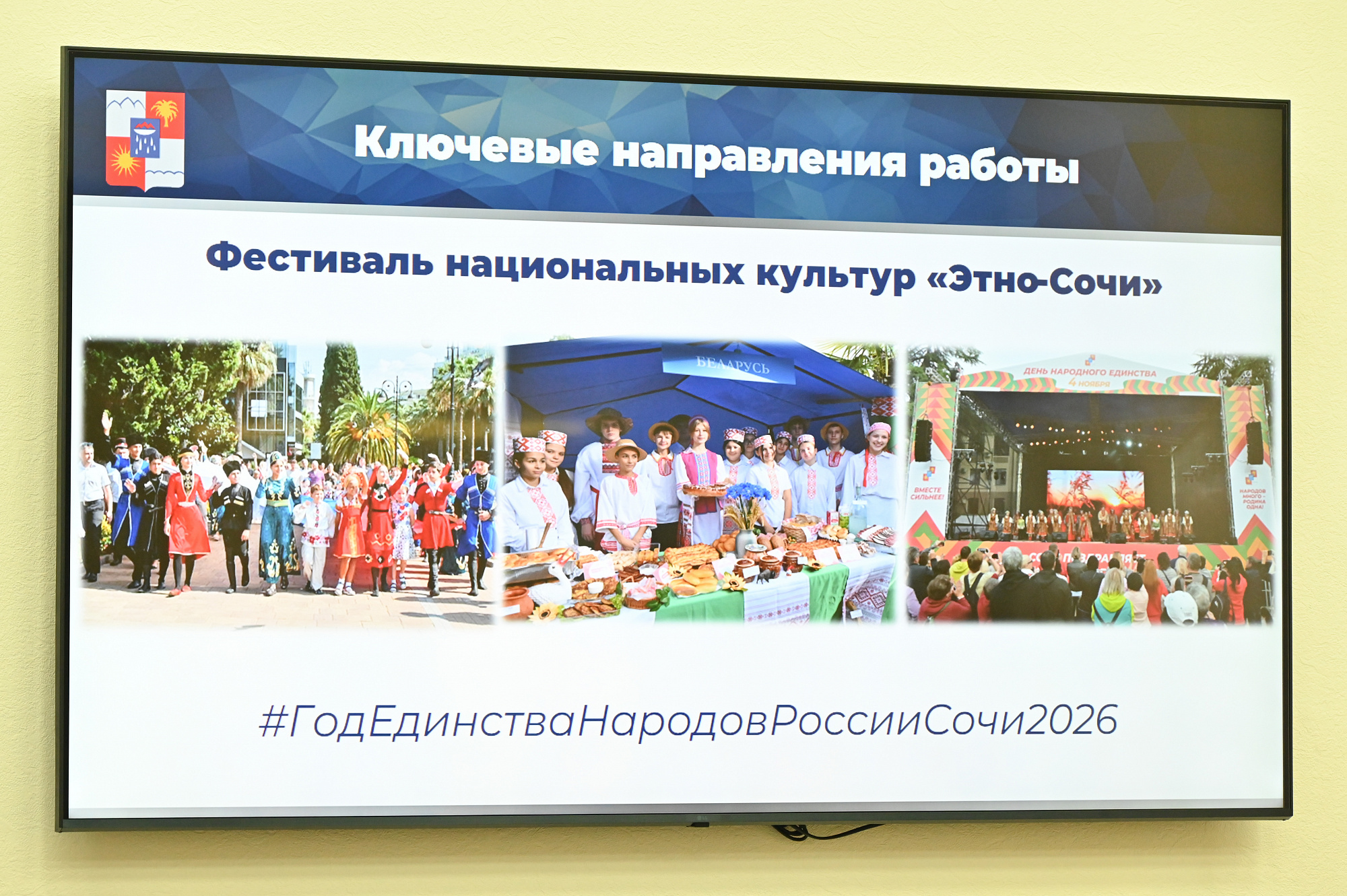 В целом программа Года единства народов России в Сочи насчитывает более 1000 мероприятий разной направленности. Одним из событий года станет празднование 45-летия сада-музея «Дерево дружбы», где ранее проходили заседания городского Совета национальных объединений, сформированного в 1995 году. Тогда в его состав вошли 19 общин, сегодня их количество выросло до 34.